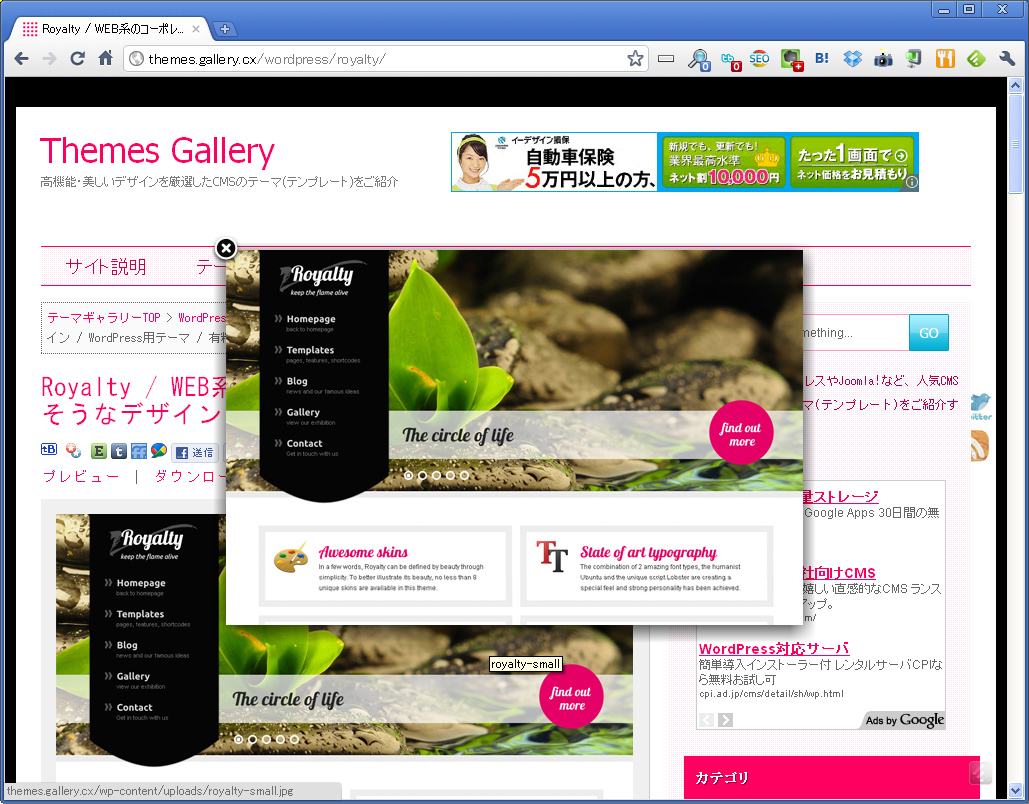 導入サイト:Themes Galler(テーマギャラリー)- Fancybox