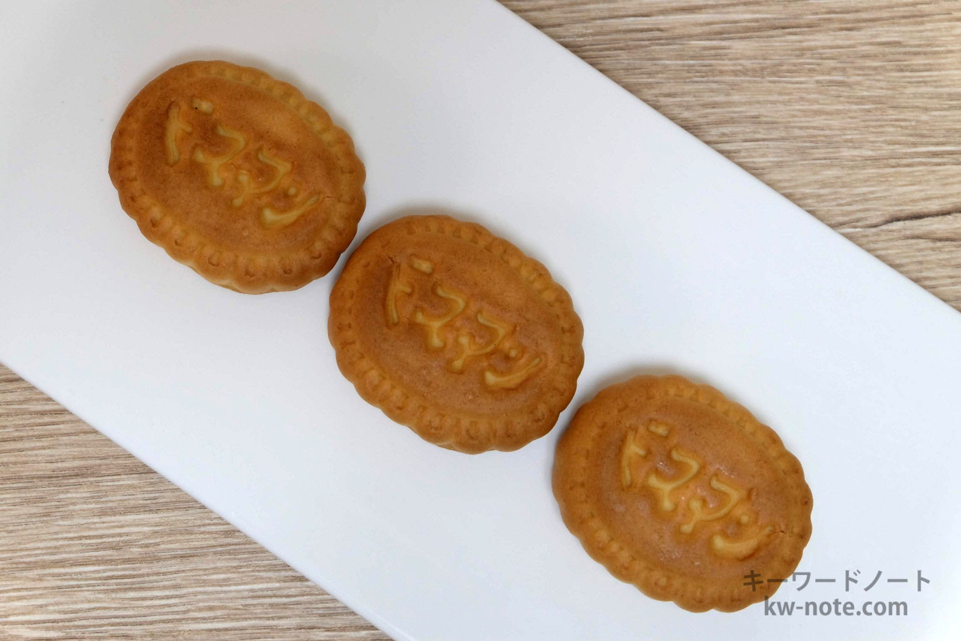 「ビスケットの生地」とされていますが、ザクザクした食感ではなく、しっとりしていて(焼き立てはザクっとしていると思われます)、中は甘さ控えめな餡。