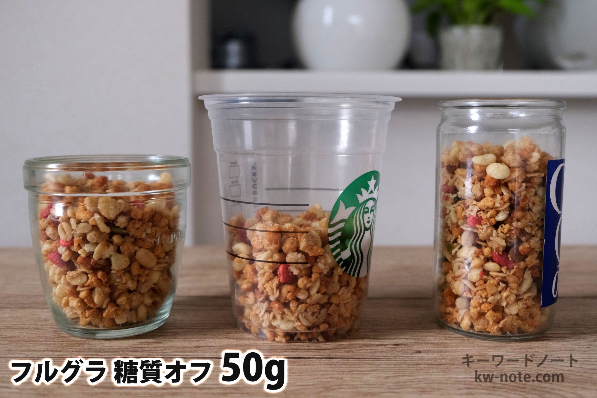 「フルグラ糖質オフ」以外の他のシリアルの量については以下のリンクからご覧いただけます。