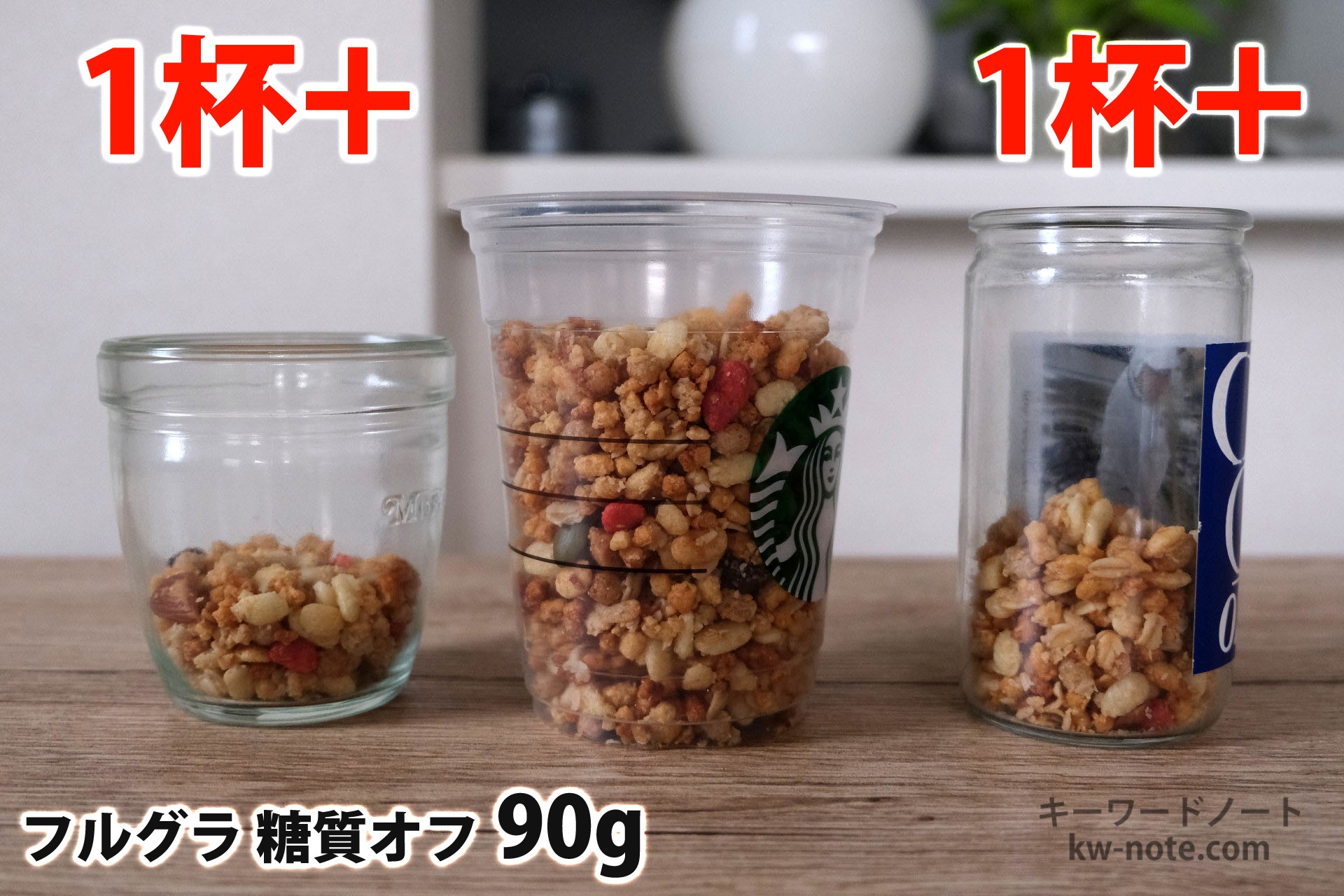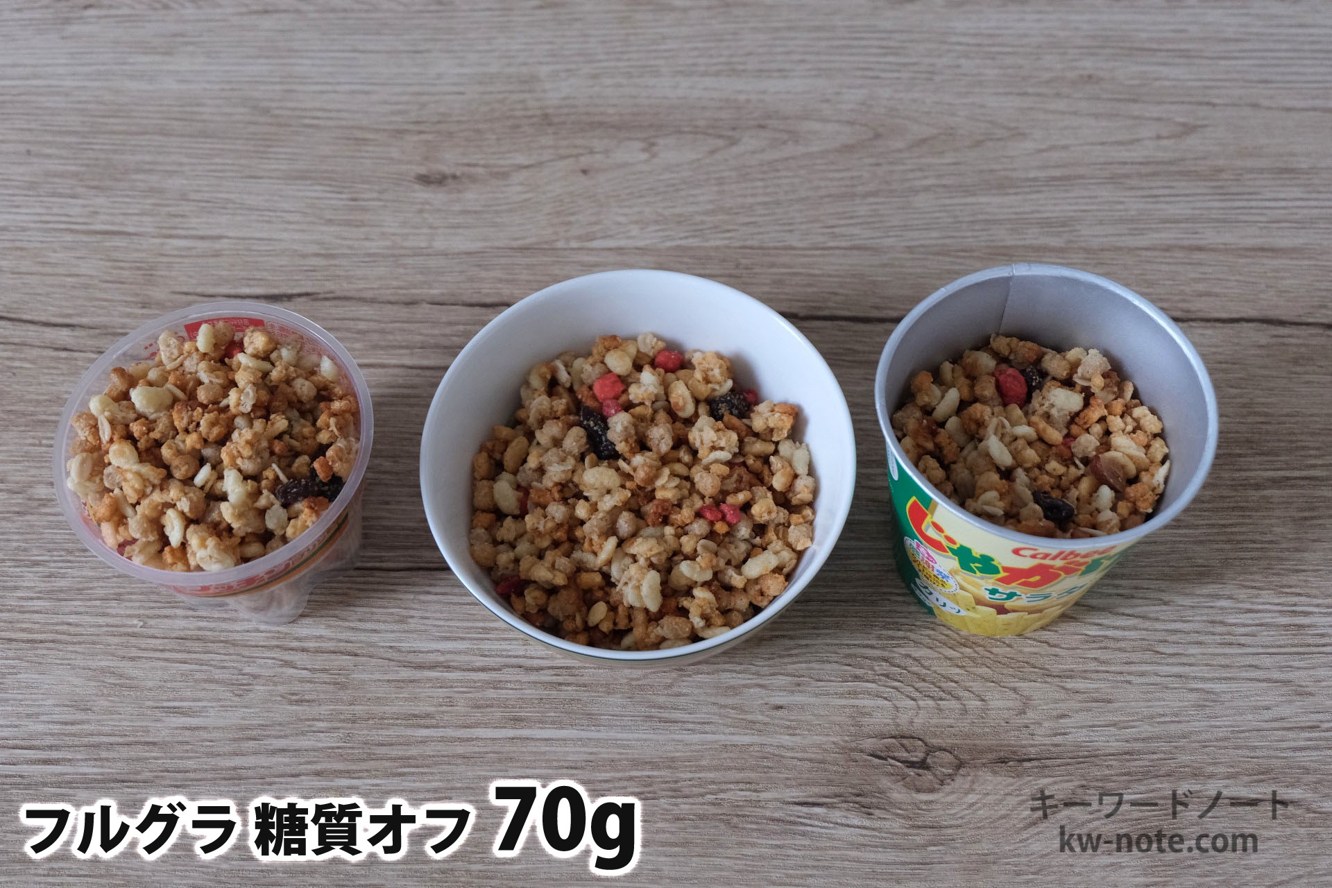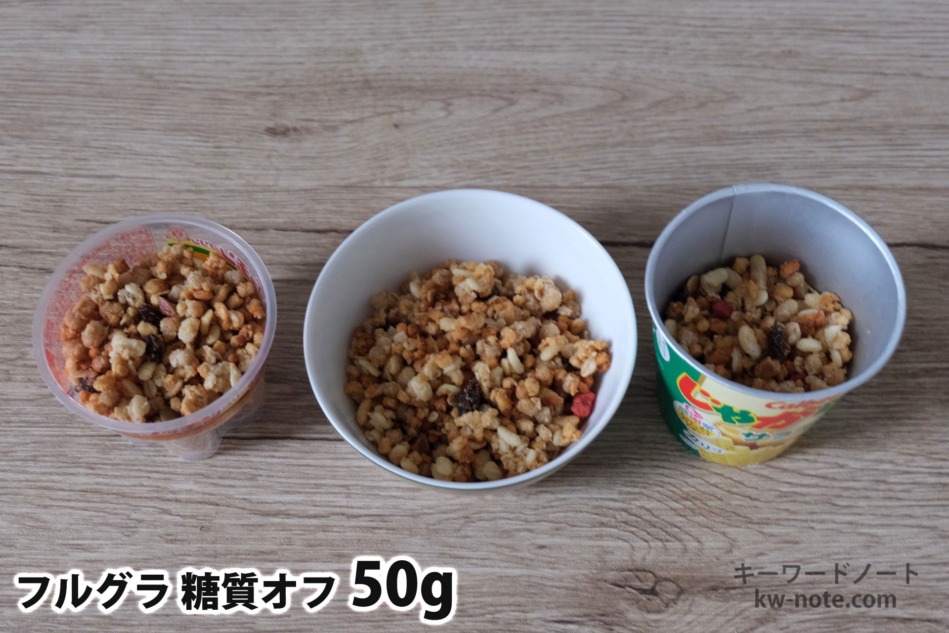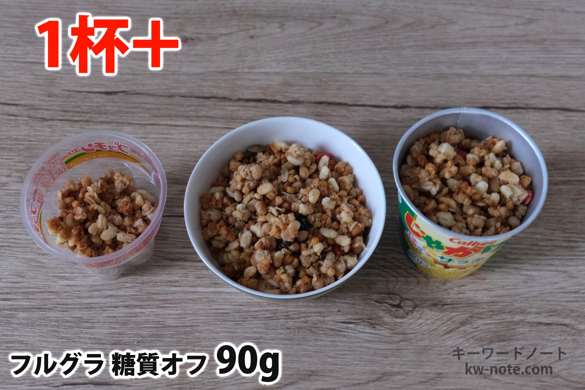 ただ、カロリーはほぼ一緒、むしろフルグラ糖質オフの方が高いので、食べすぎには注意です。