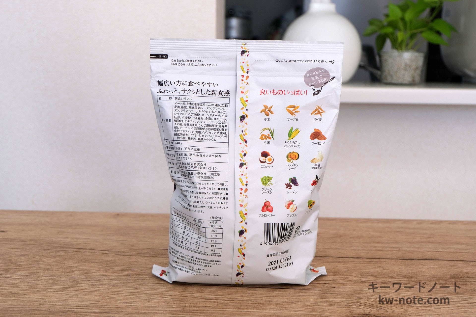 「ふわサクグラノーラ フルーツ&ナッツ」のメーカー「日食」(日本食品製造合資会社)はカルビーやケロッグなどと比較するとそれほど聞かない名前ではありますが、日本最初のシリアルメーカーとされており、最近だと日食のオートミールがかなり人気です。