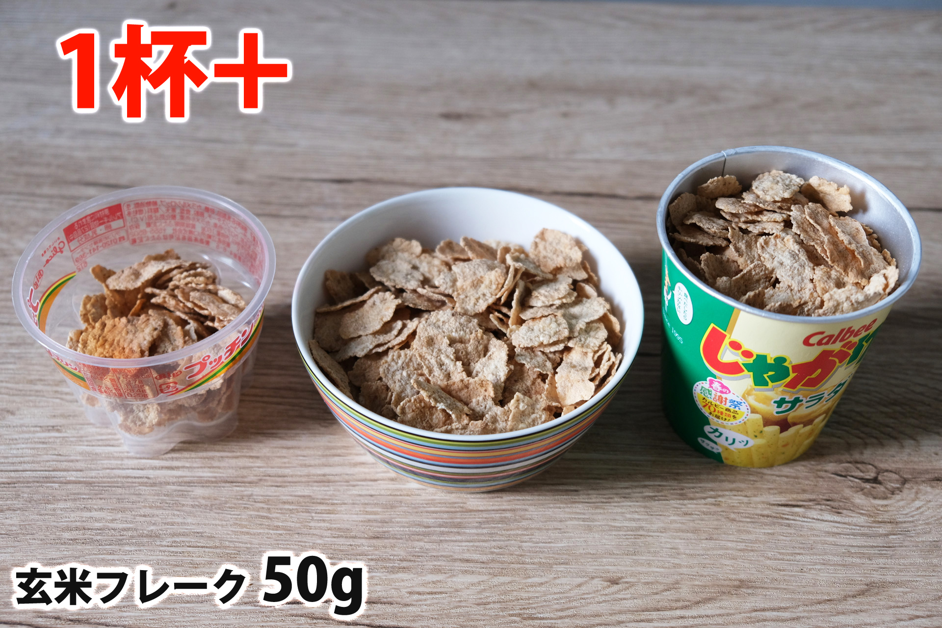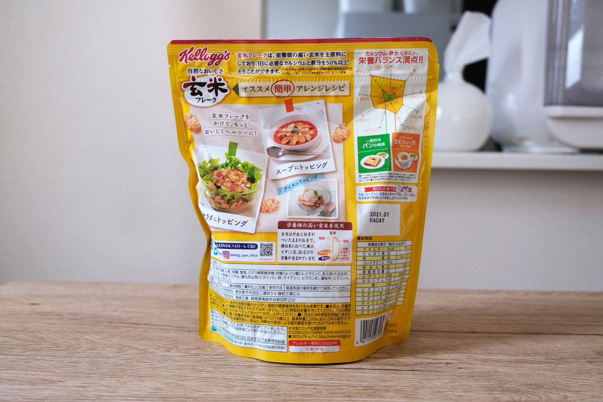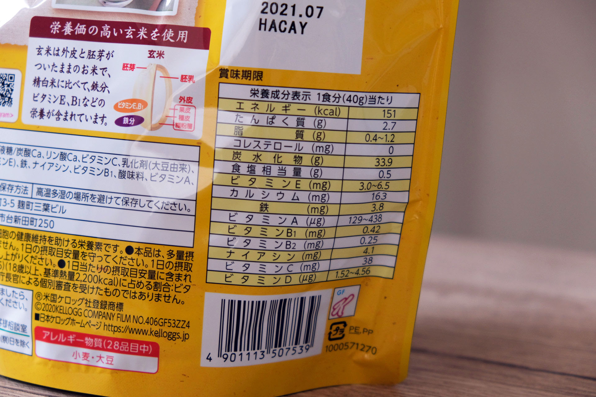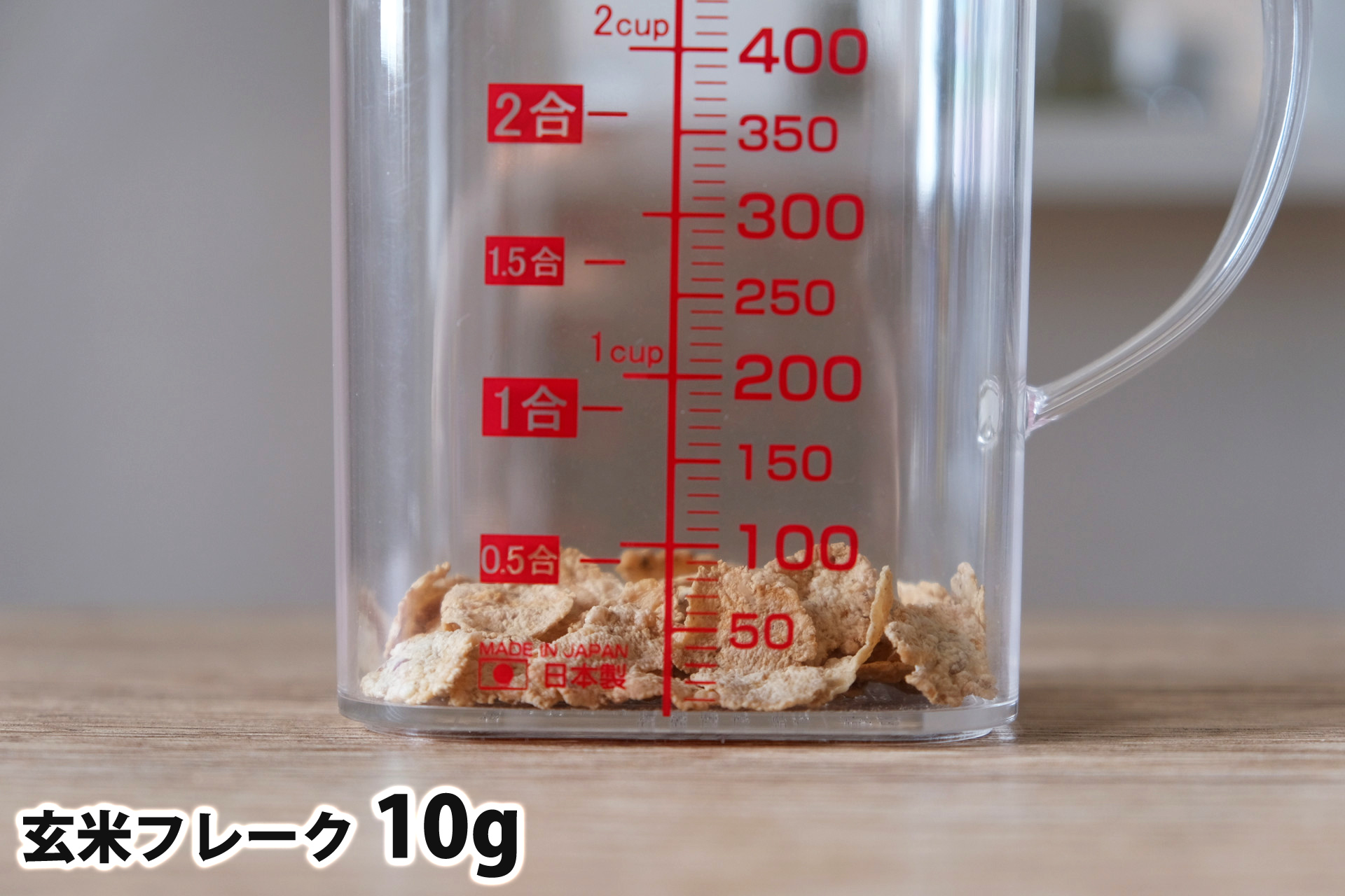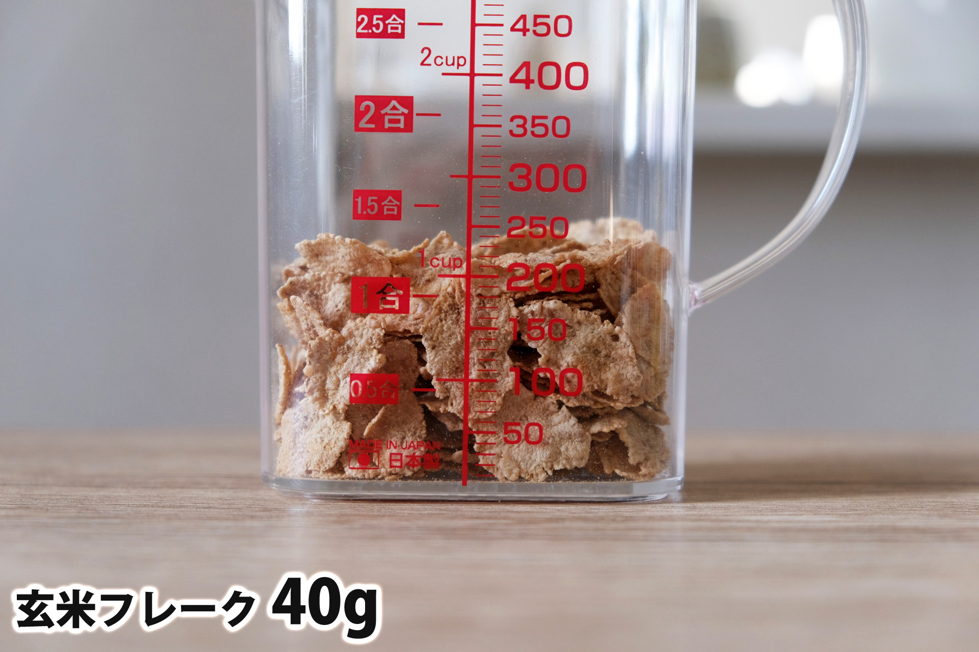 パッケージには「1食分(40g)当たり」と書かれていますので、玄米フレークは1食40gが標準的な量といえます。