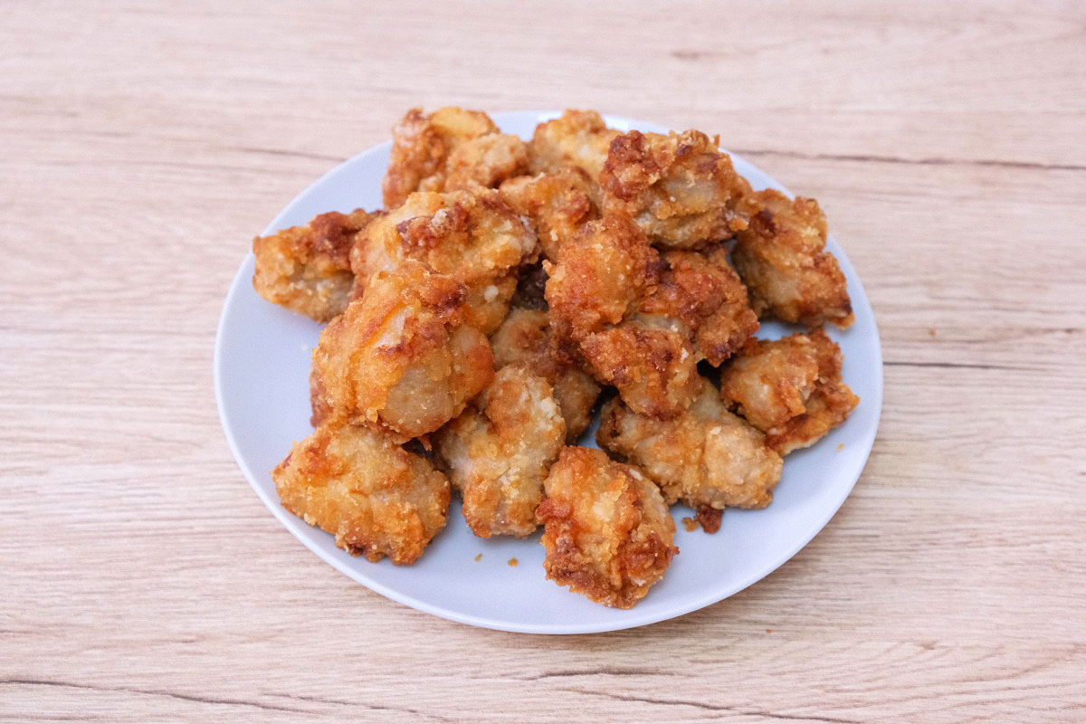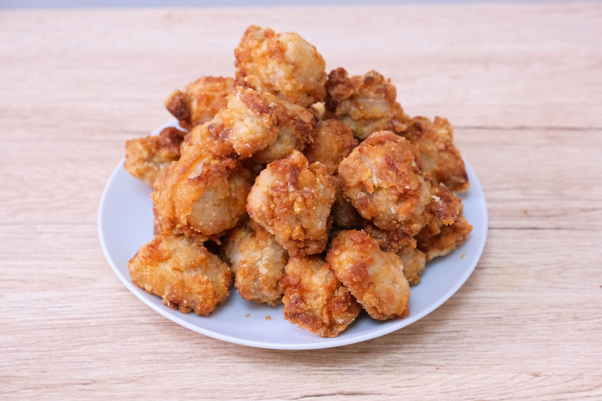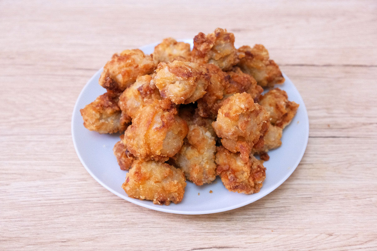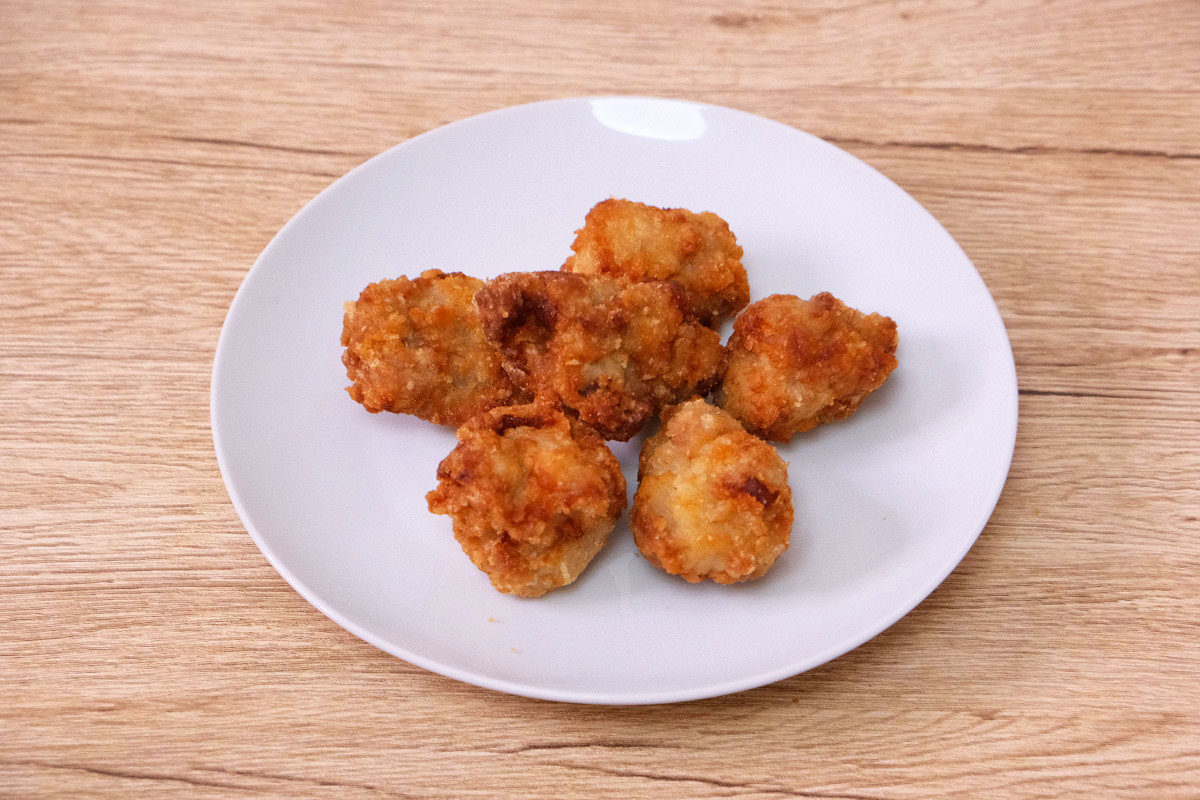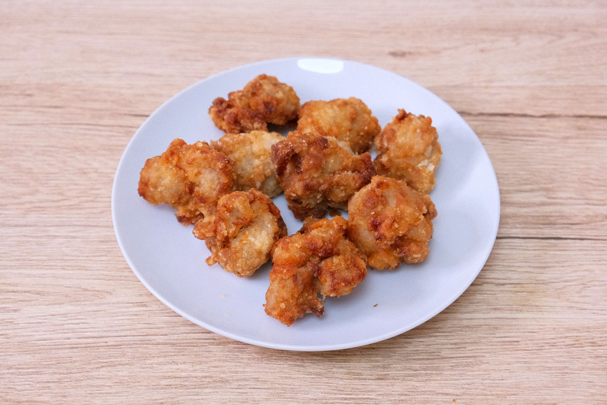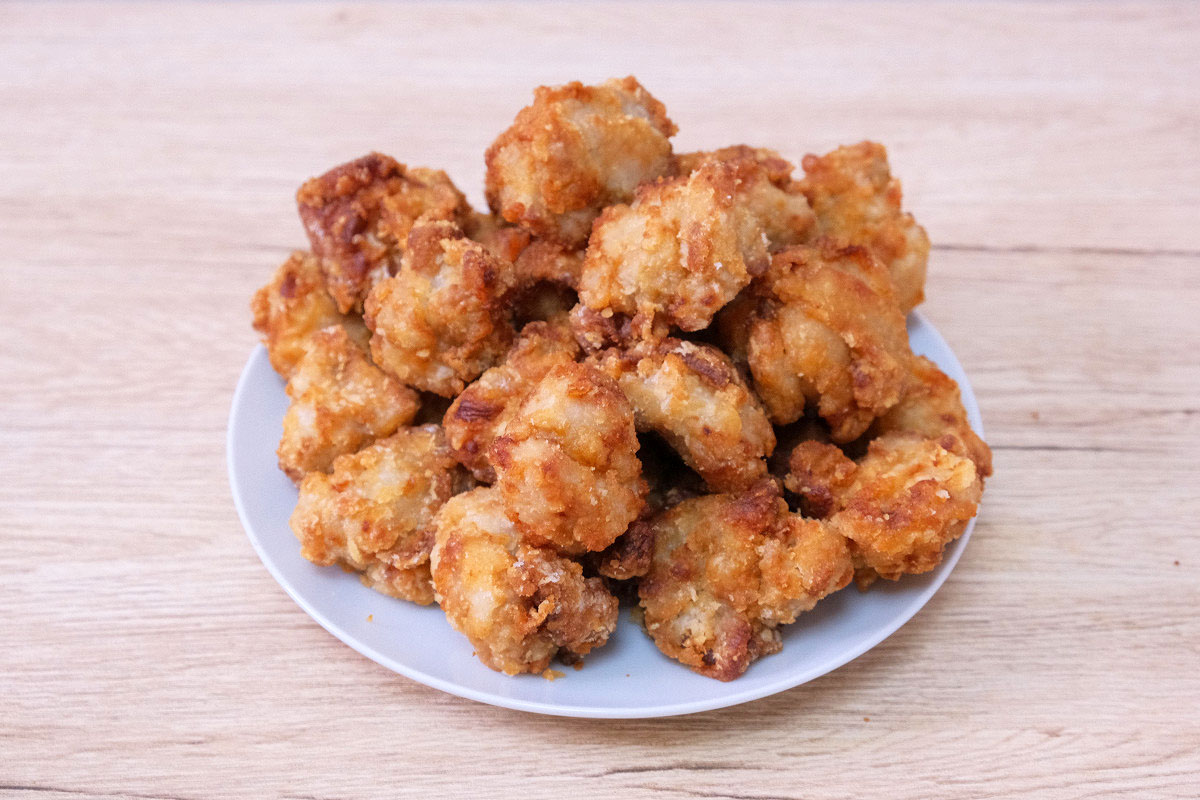 から揚げ100gから1kgまで、どれ位の量でどれ位の個数になるのか、栄養成分と共にまとめました。