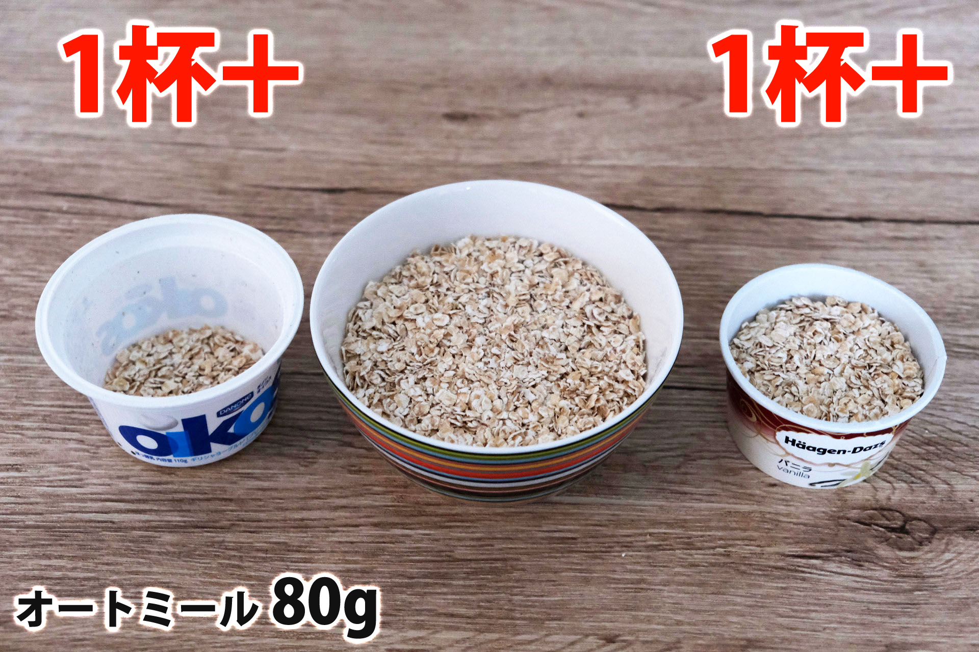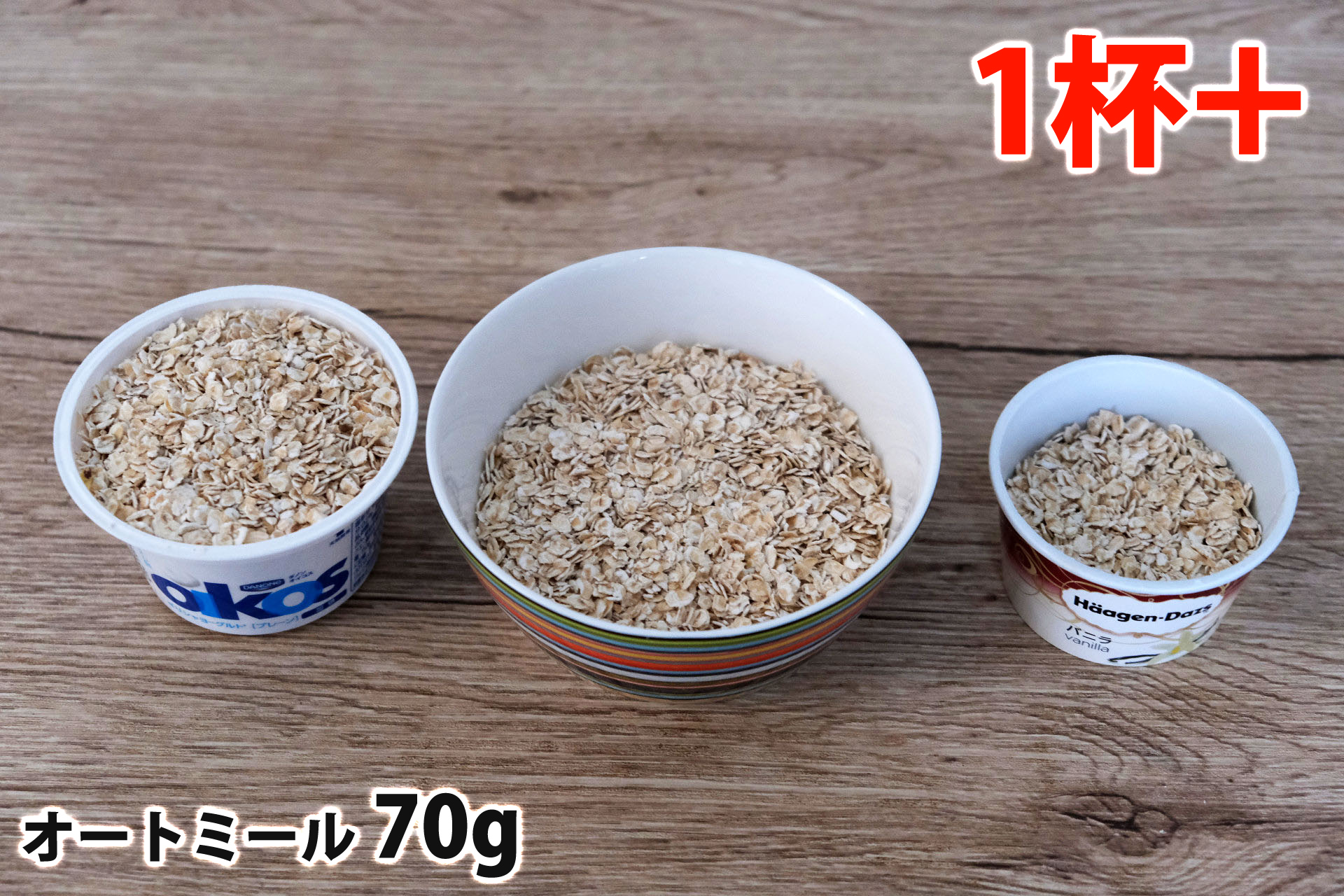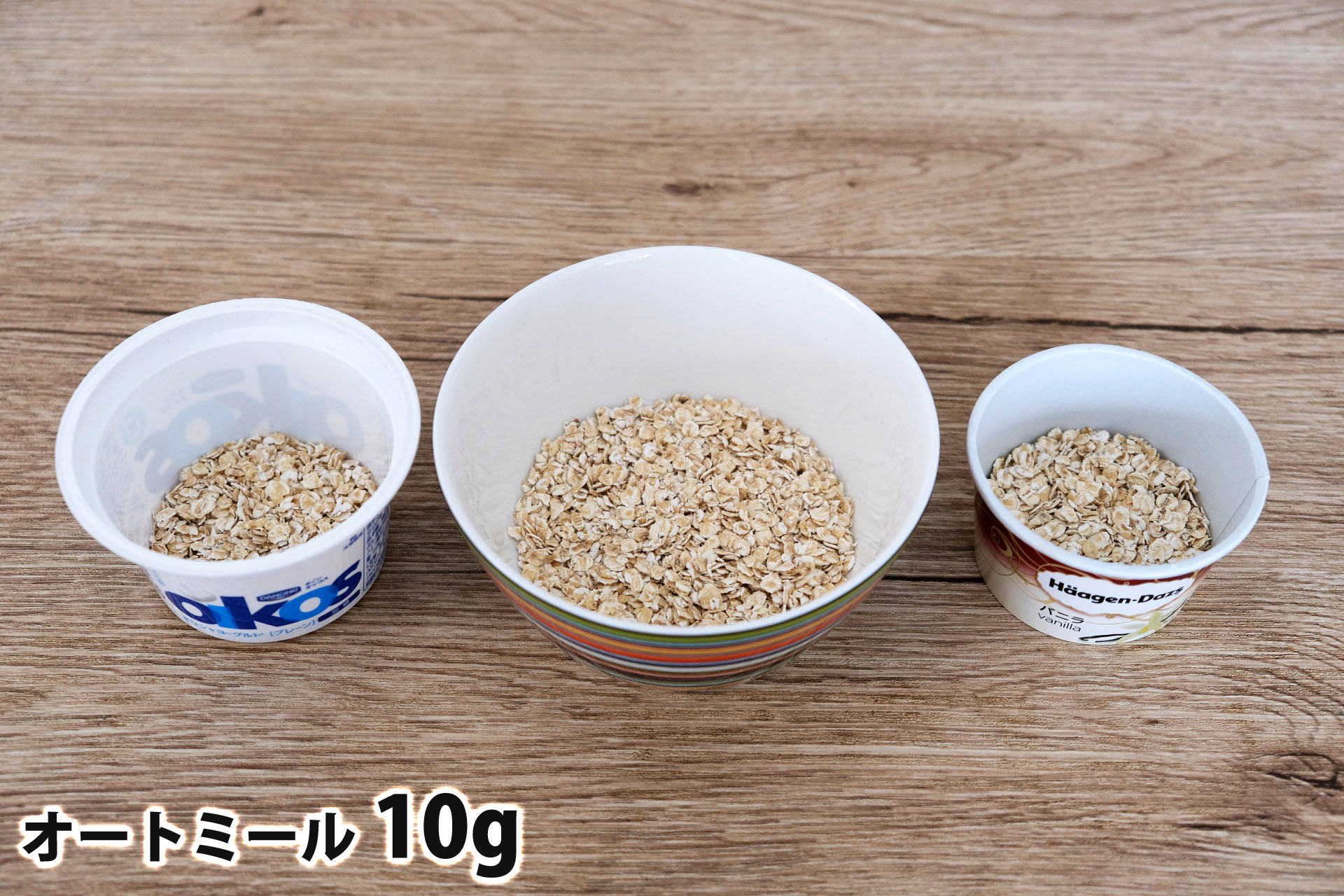 オートミール1食分の量はどれ位の量なのかと、各グラムごとの分量の目安、牛乳・ヨーグルト・豆乳をかけた時の栄養成分とともにまとめました。