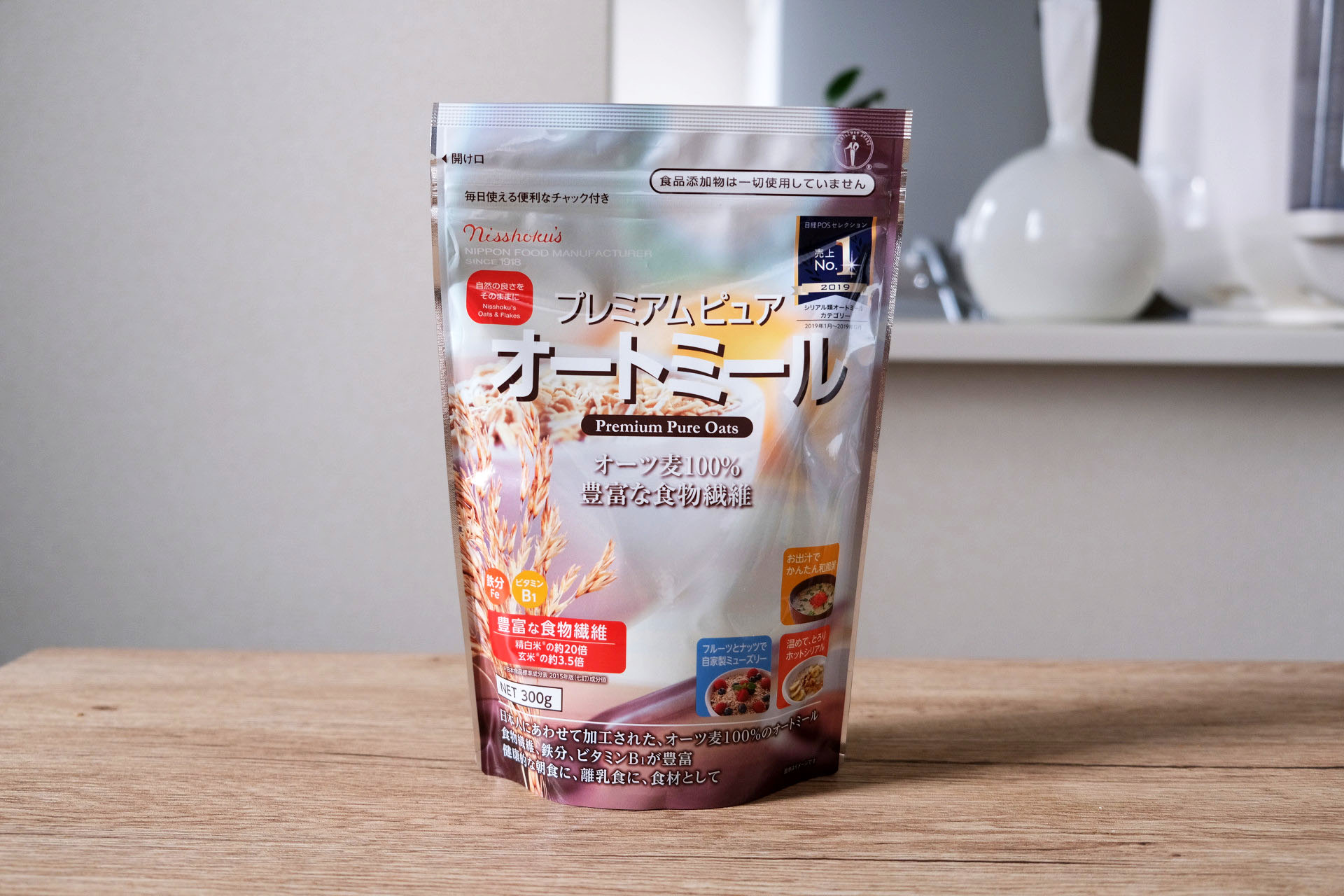 現在、国内外問わず様々なメーカーから発売されていますが、今回のオートミールはスーパーなどで一番目にする機会の多い日本メーカー「日食」の「プレミアム ピュアオートミール」を使いました。