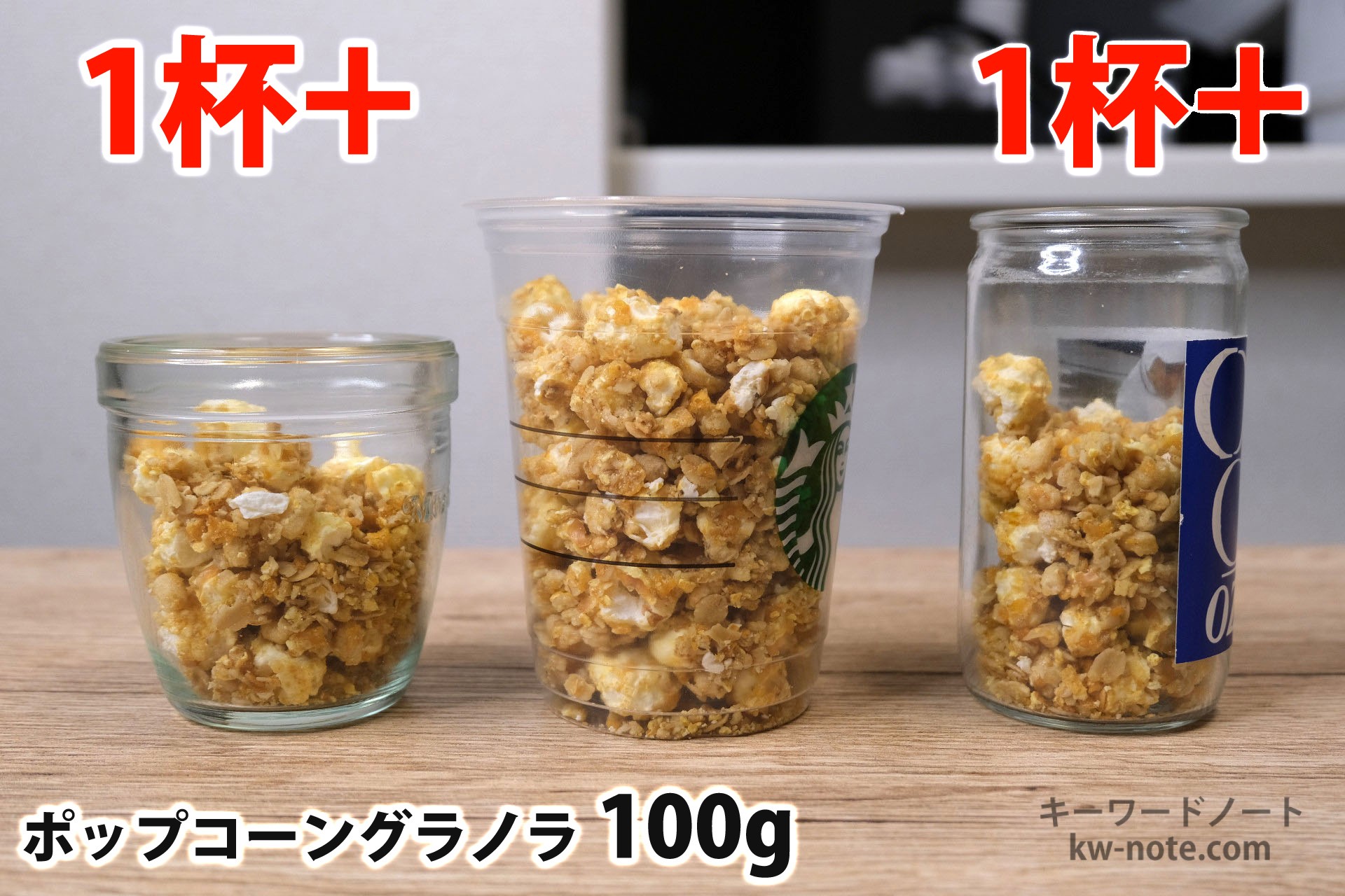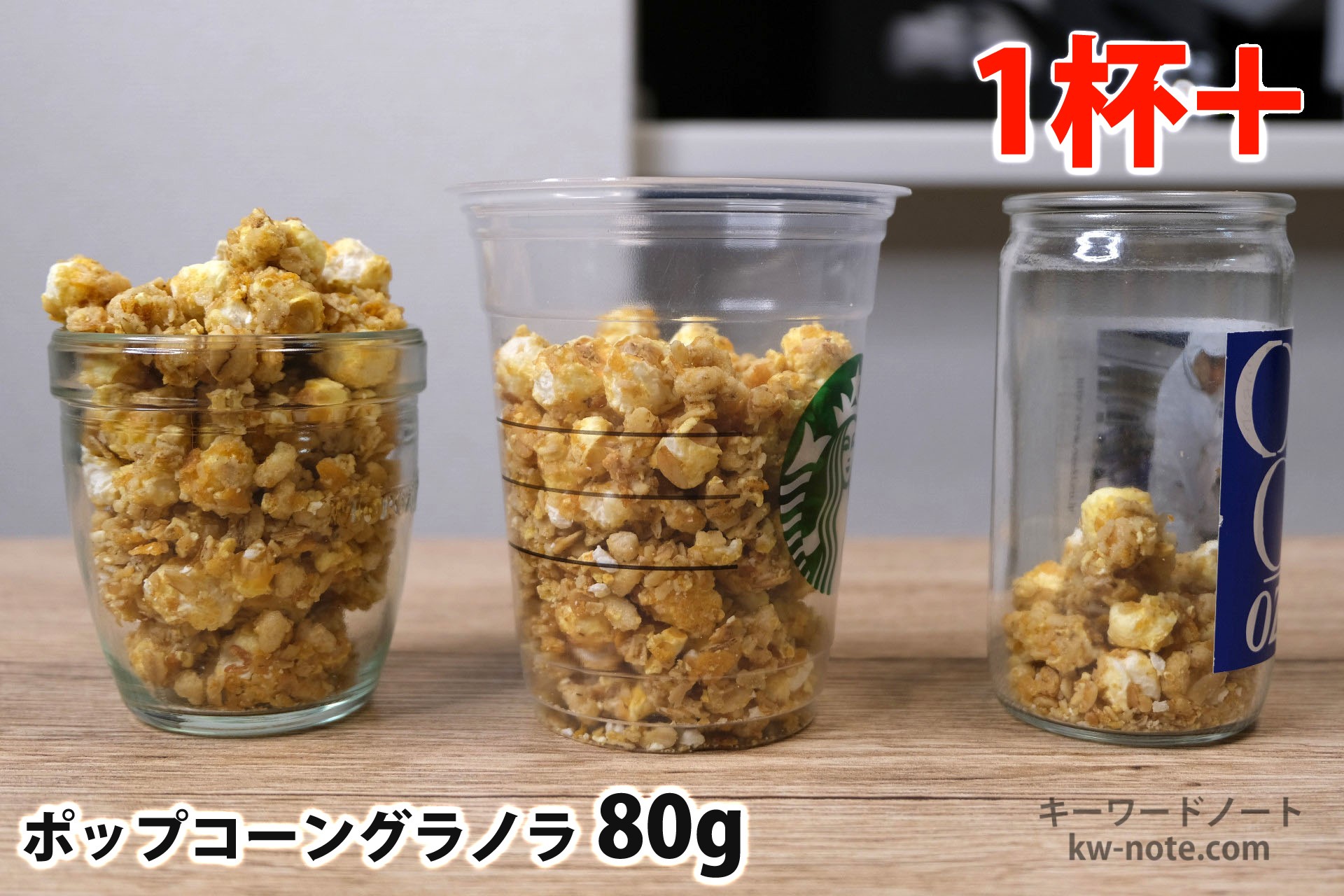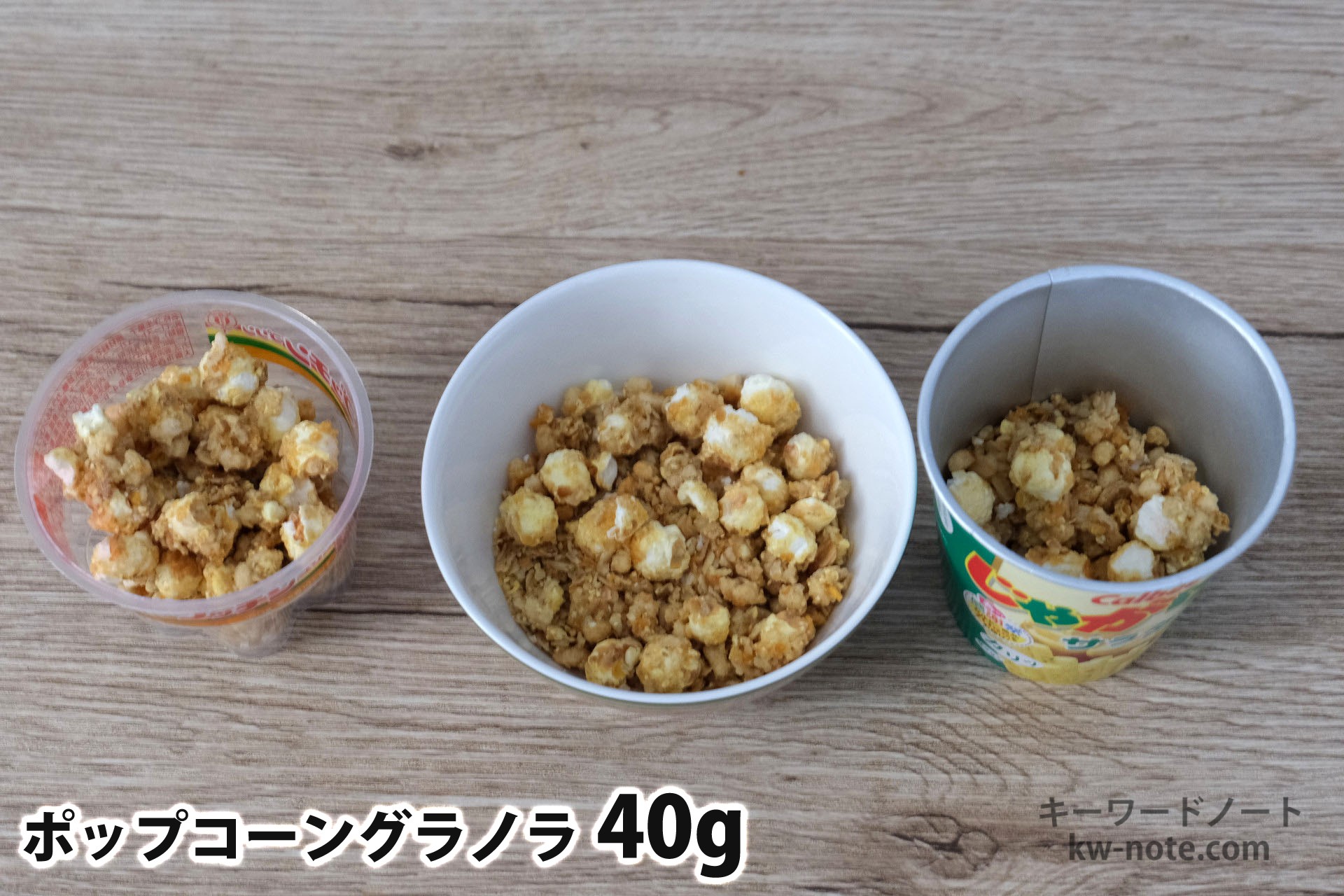 ポップコーングラノラ以外の他のシリアルの量については以下のリンクからご覧いただけます。
