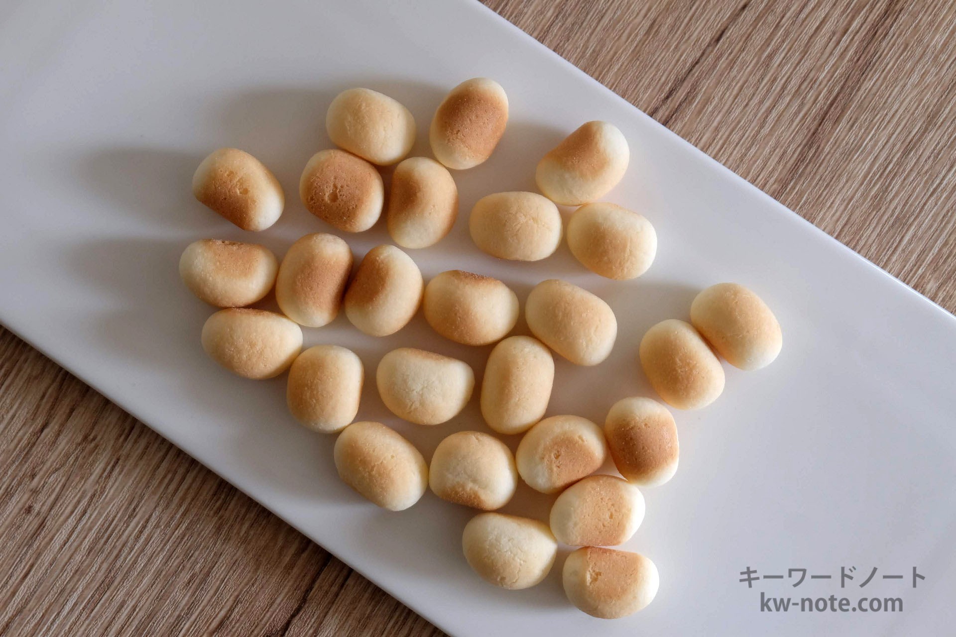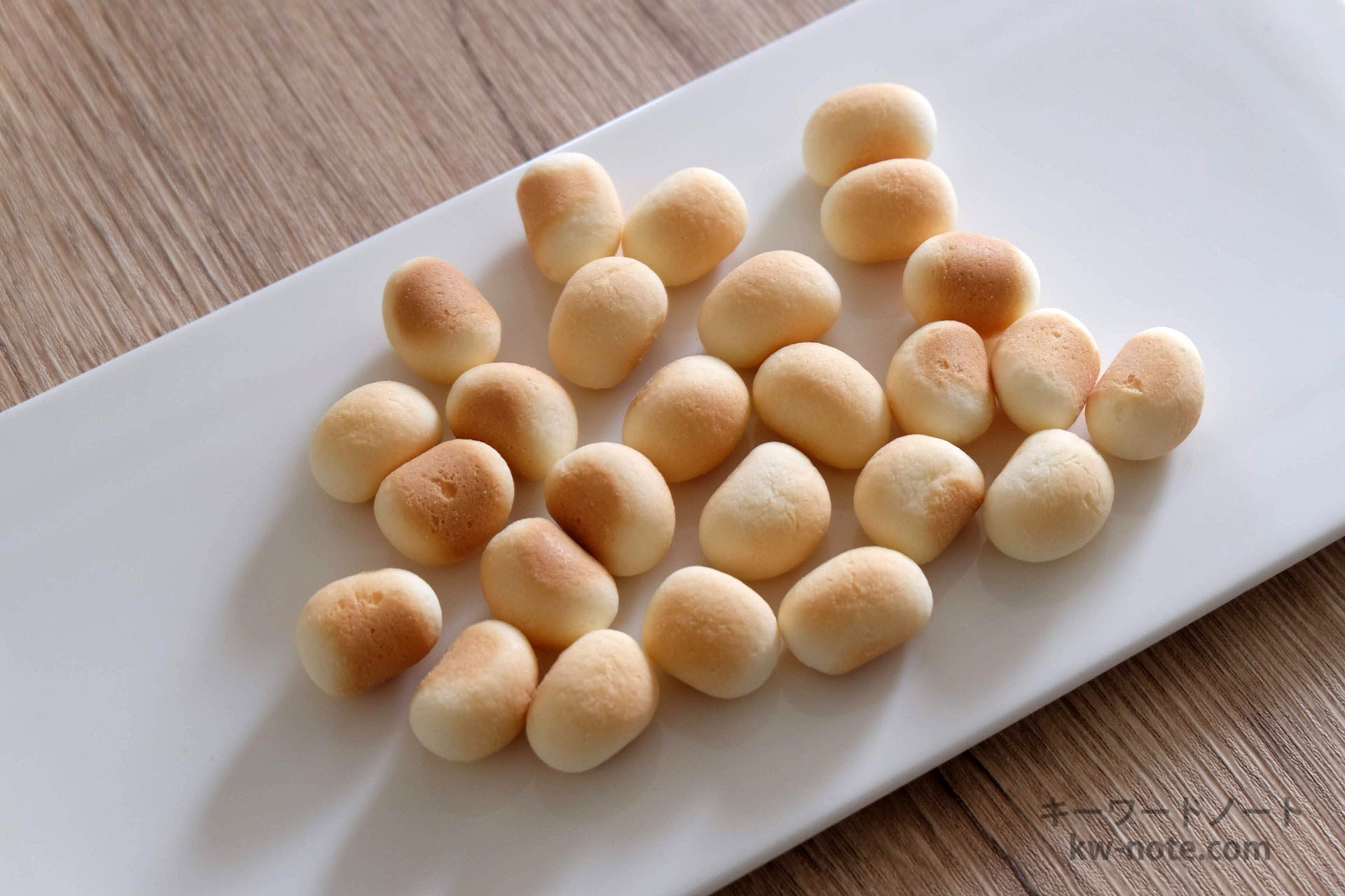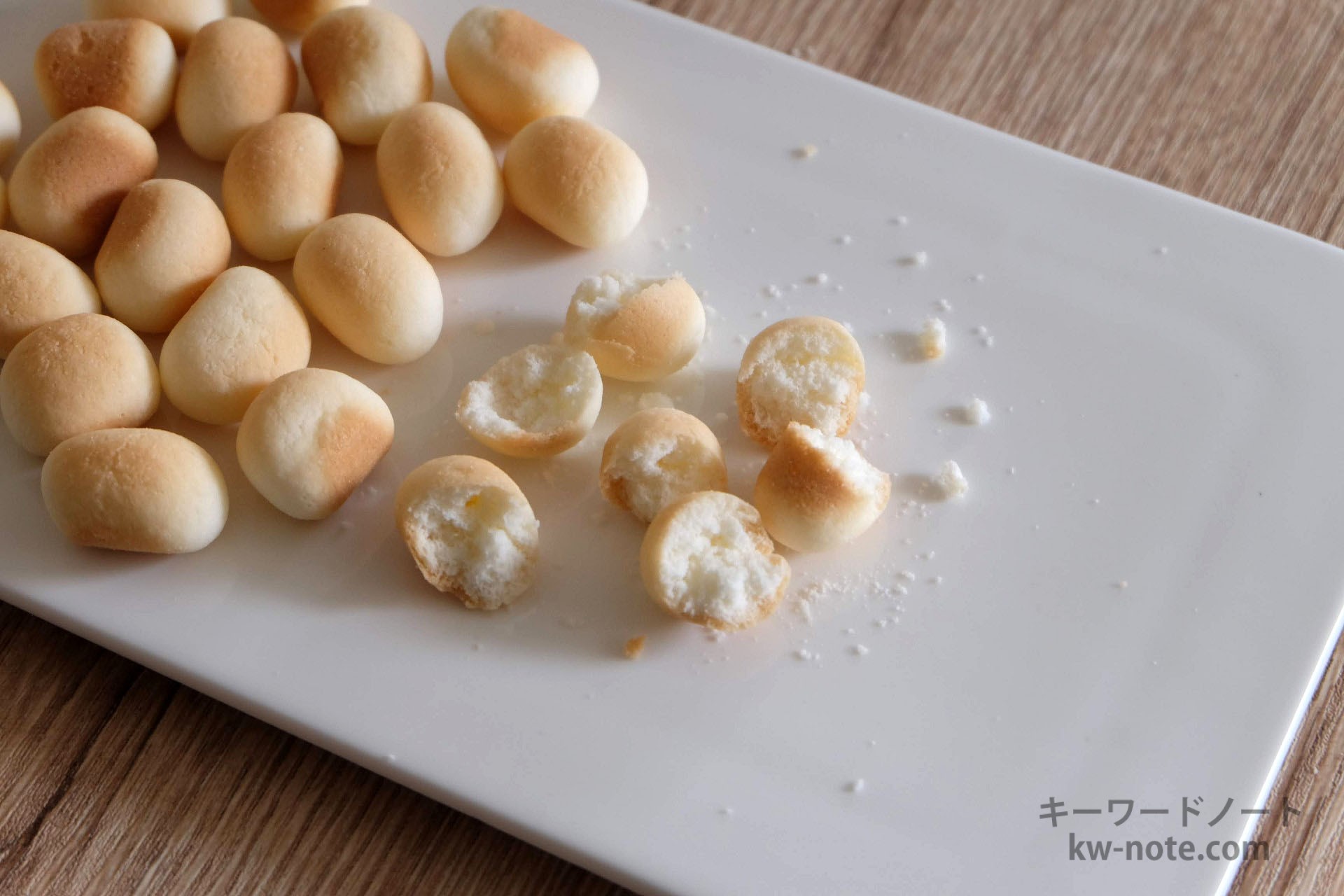 食べてみると、乳ボーロとは味も少し異なり、やや粉っぽい感じがあり、後味はややすっきりしている印象です。