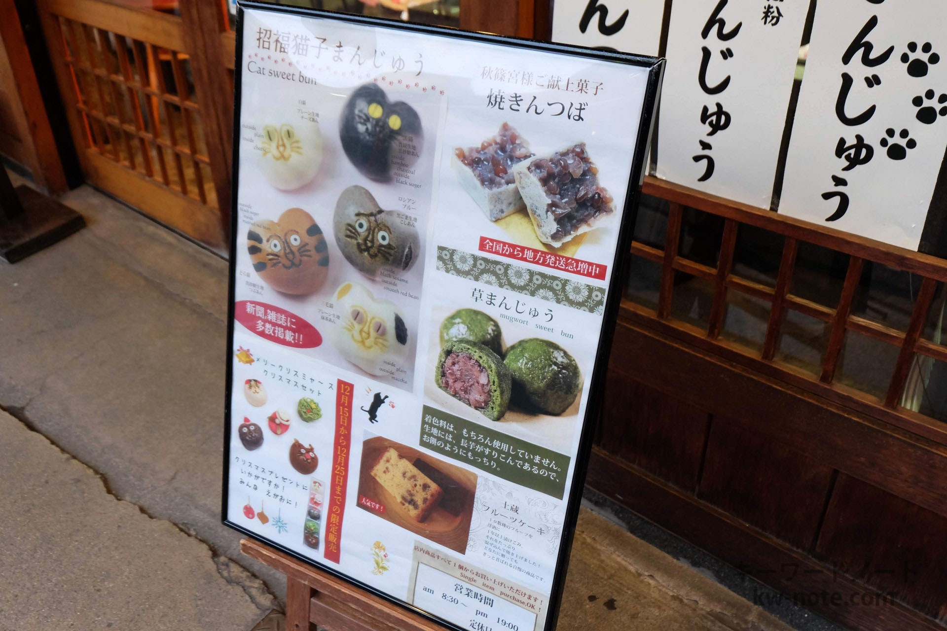招福猫子の読み方は「しょうふくねこ」、稲豊園は「とうほうえん」。
