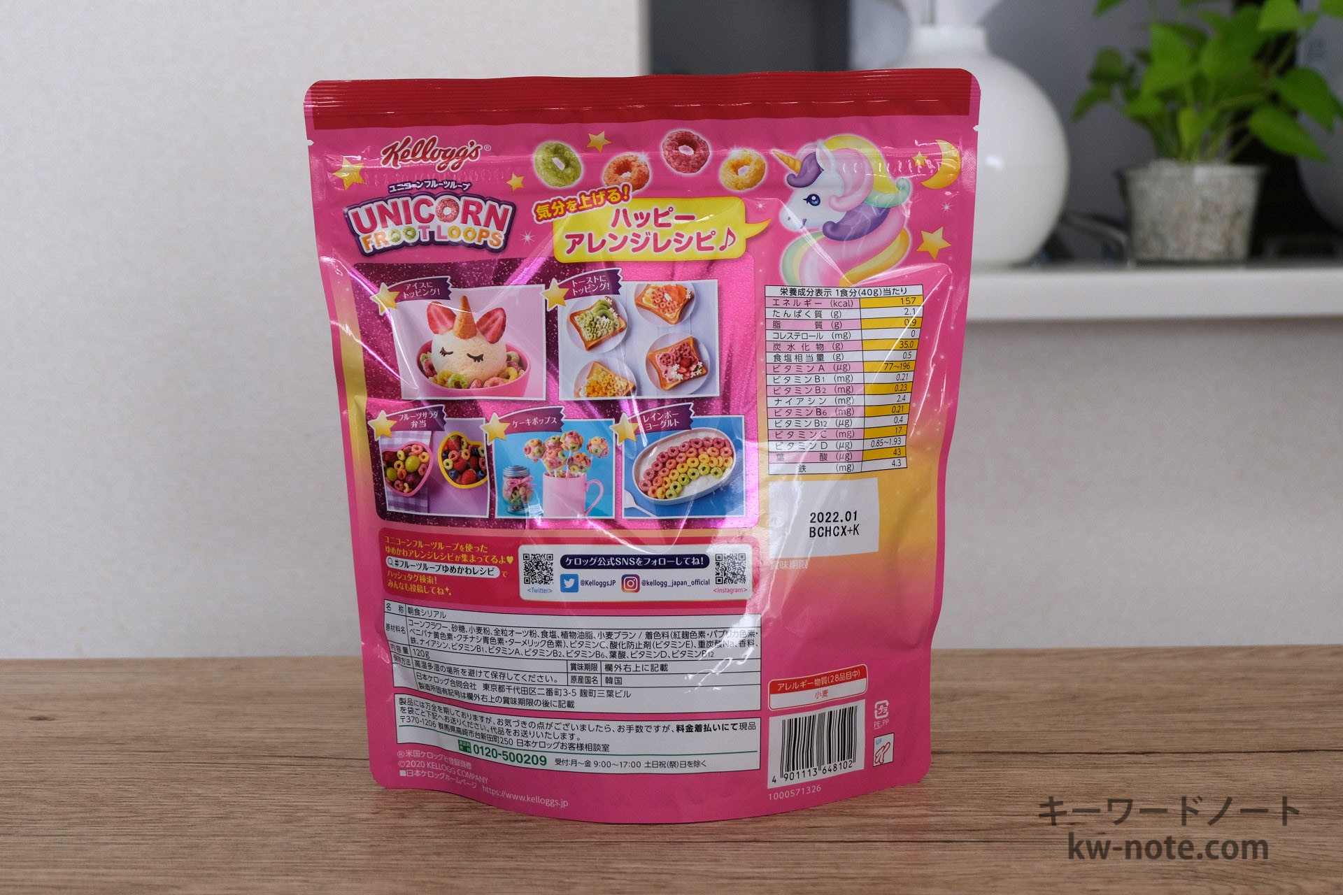 ユニコーンフルーツループは4色のリング型シリアルで、サクサク食感が特徴。