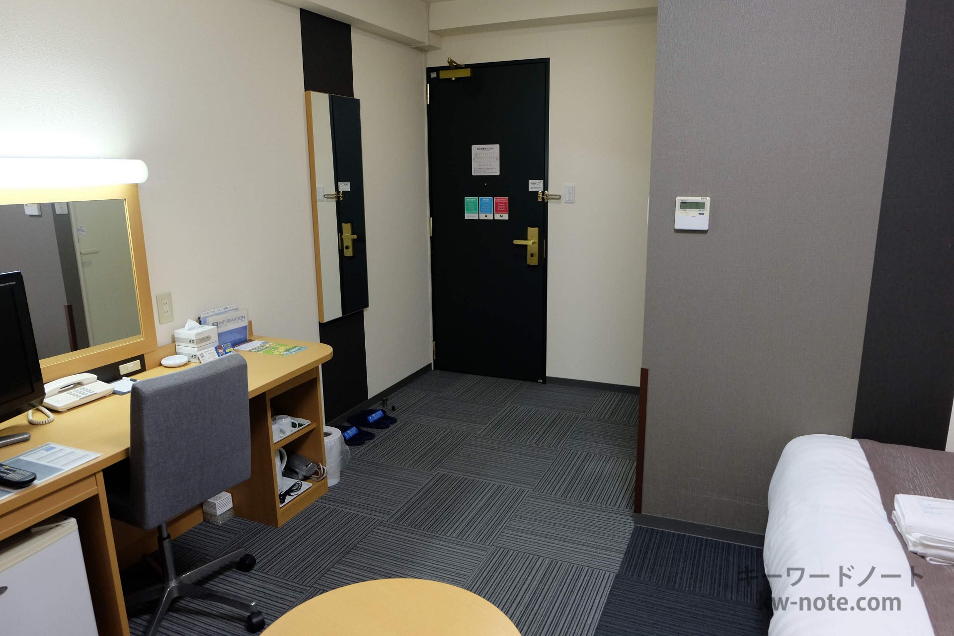 ホテルでいうとビジネスホテルの標準からやや広めの部屋で、1人では快適に過ごせるかと思います。