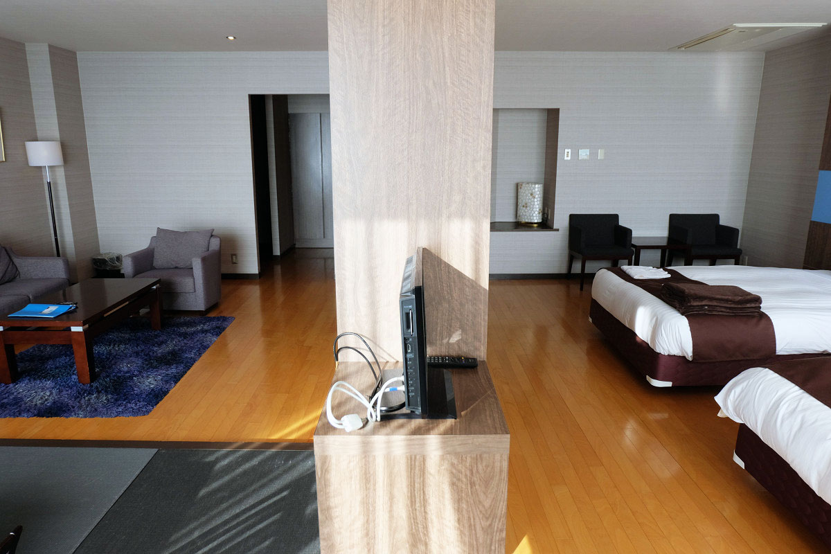ホテルでいうとリゾートホテルで2~4人向けの部屋で、4人だとかなりゆとりのある利用が出来、5人でもある程度ゆとりのある広さです。