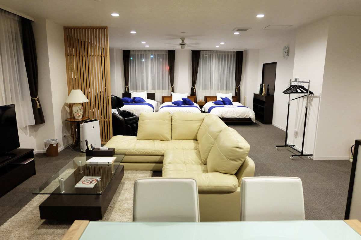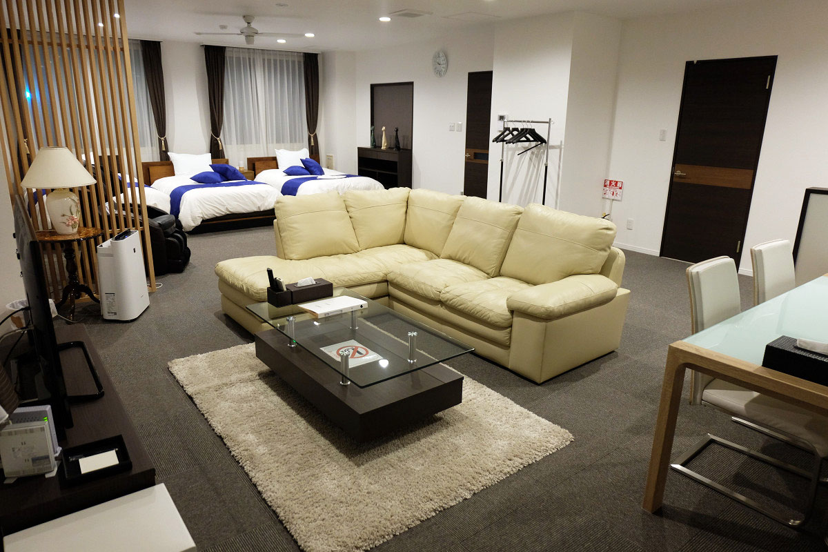 ホテルでいうとリゾートホテルで2~5人向けの部屋で、5人でもある程度ゆとりを持って利用できる広さです。