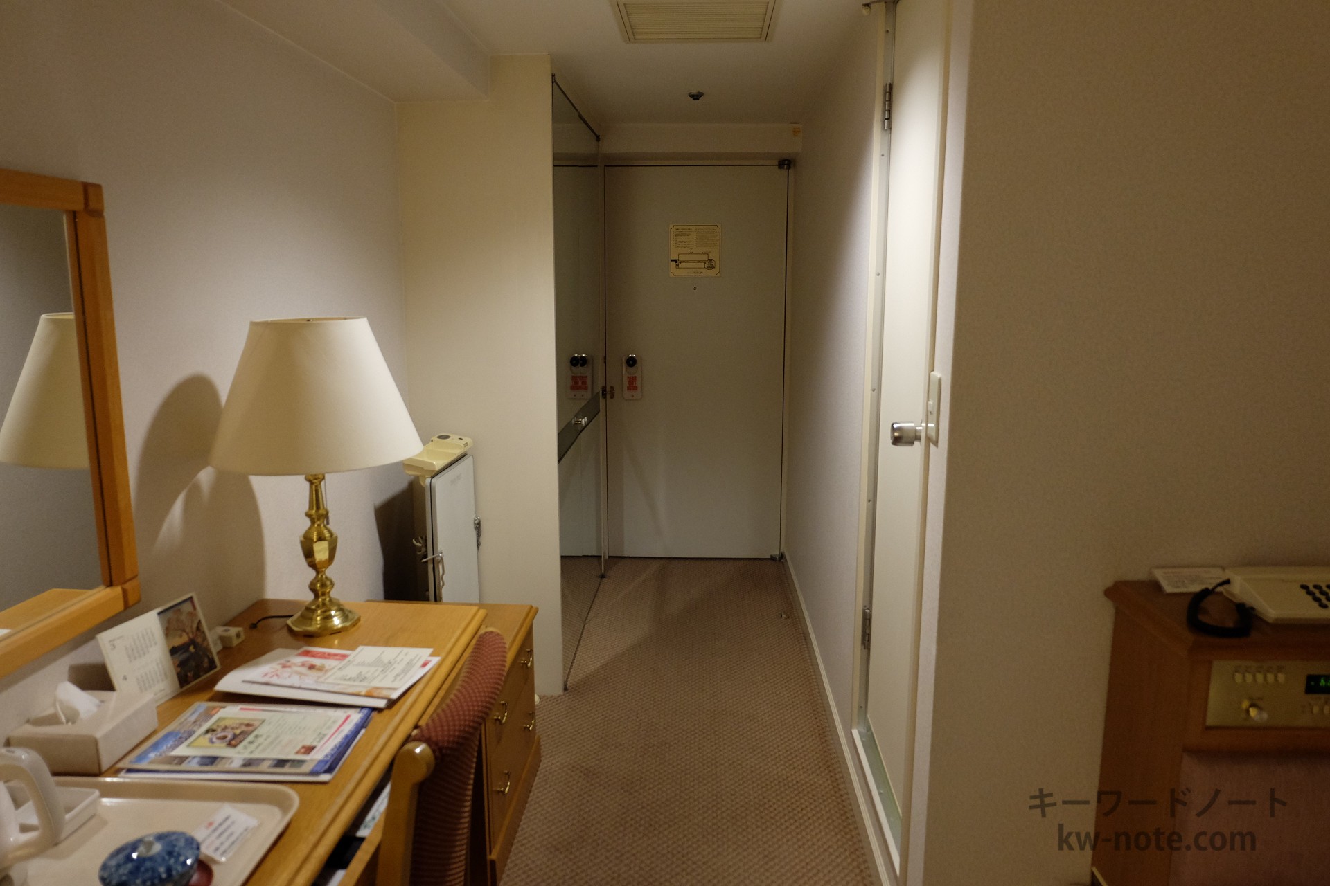 ビジネスホテルでいうと狭い部類の部屋ですが、1泊であれば快適ではないものの問題なく過ごせるスペースがあります。