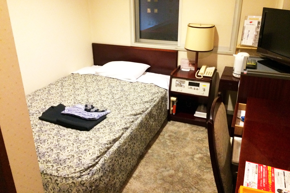 ホテルだとユニットバス付のかなり狭い部屋になります。