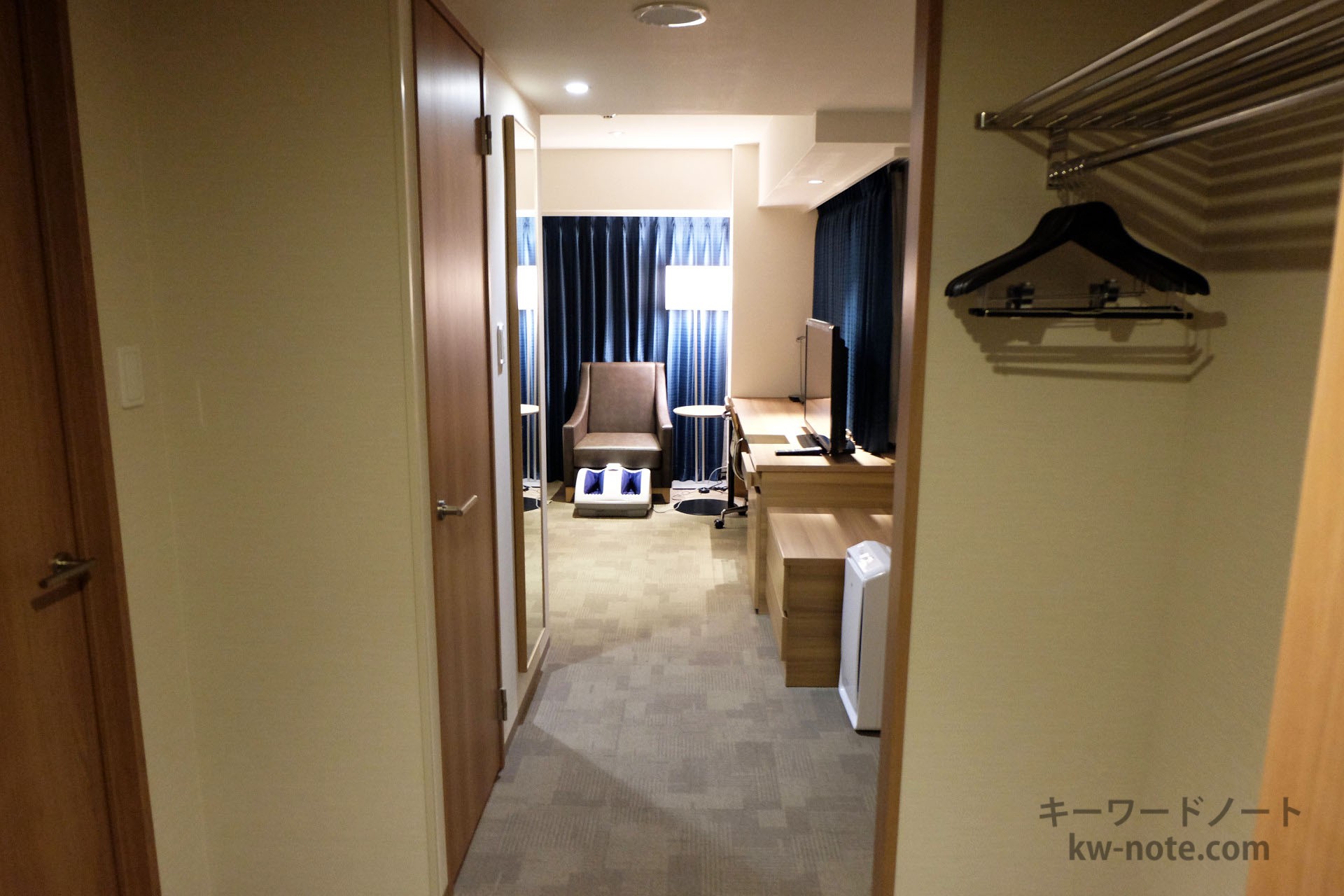 ビジネスホテルでいうと1人用としては広めで、快適に過ごせる面積です。