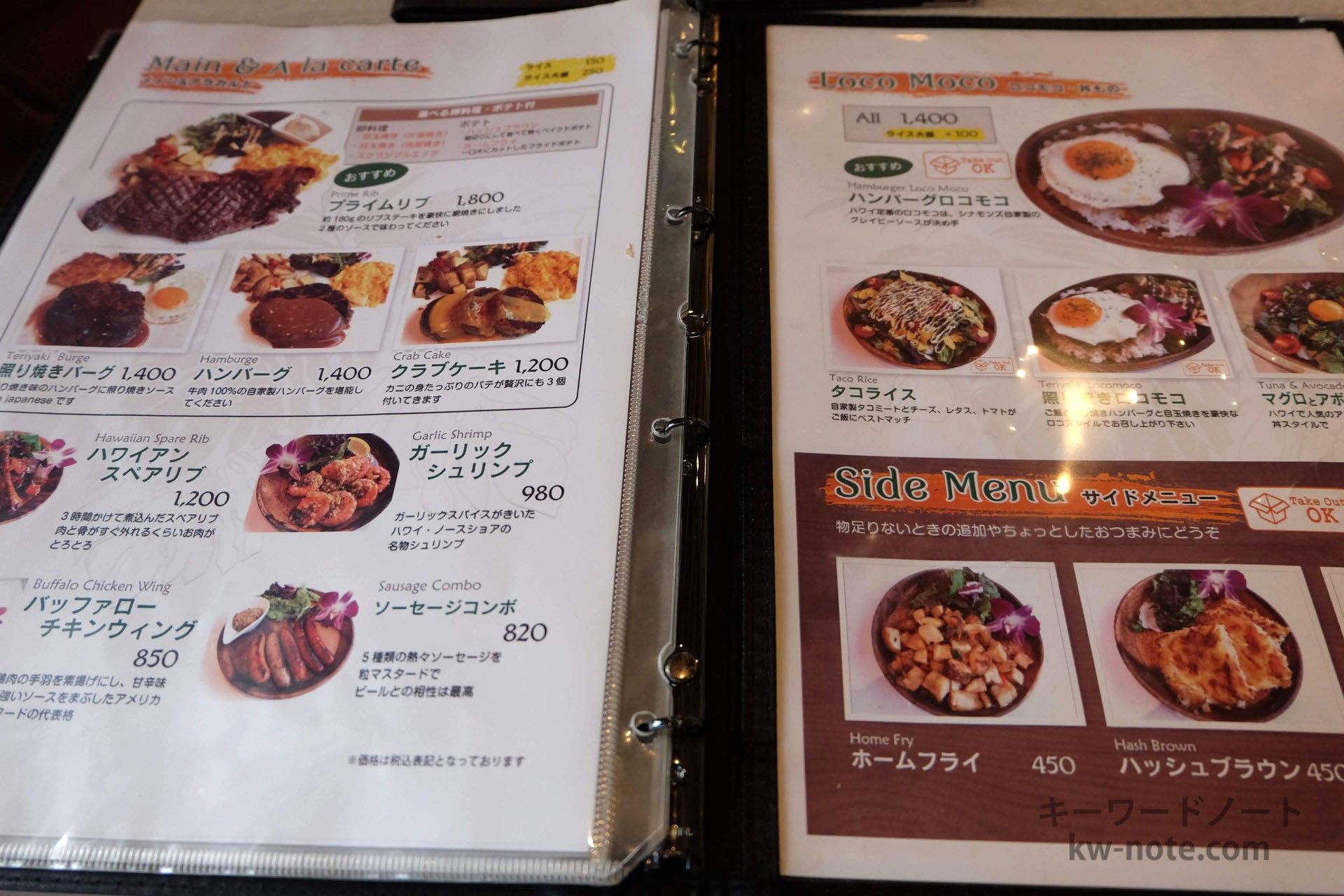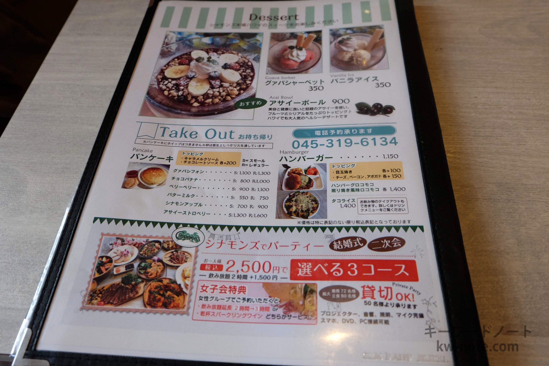 ハワイ料理の品揃えが豊富で、SNS映えするパンケーキなどお洒落なメニューも揃っており、みなとみらい線の中華街・元町駅1分、JR石川町駅からは14分ほどの場所、海岸教会通り沿いにありました。