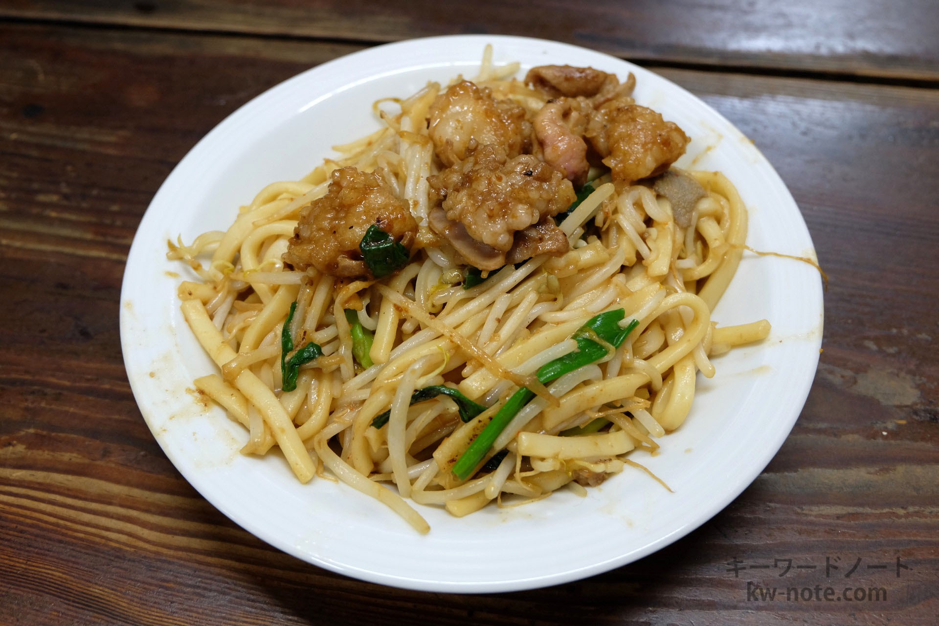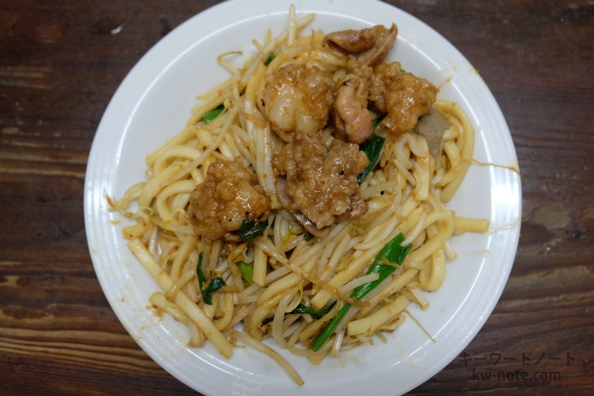 津山ホルモンうどんは牛ホルモンと野菜を加えてうどんに混ぜて食べる津山の名物料理で、発祥は1980年頃(1960年という説もあります)に飲んだ後の締めにホルモンとうどんを一緒に炒めてたべるようになったことから広まったとされます。