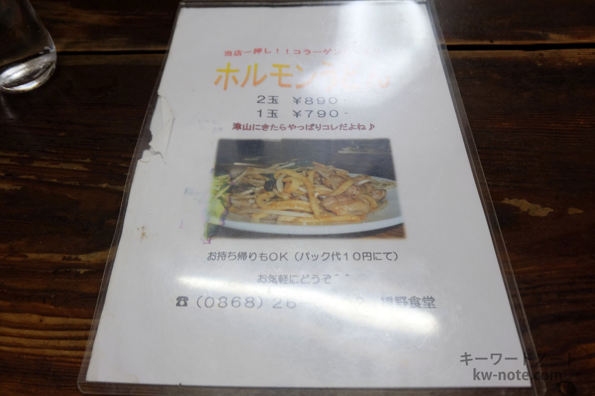 「橋野食堂」は岡山県津山市にあるうどんや鉄板焼などを提供する食堂で、津山ホルモンうどんが有名なお店です。