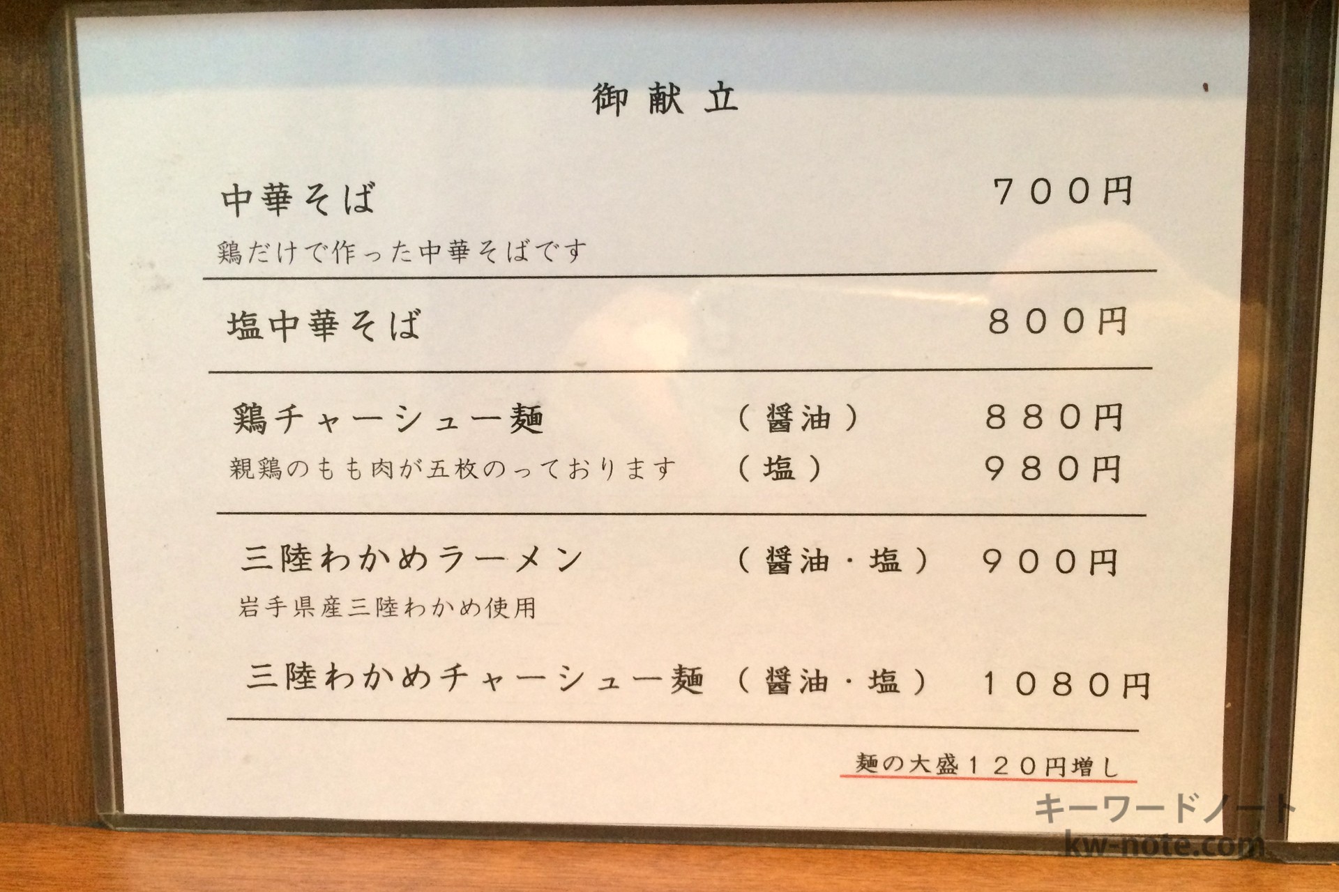 お店がオープンしたのは2009年10月10日で、この当時は豚骨を使ったこってりラーメンがトレンドだったと記憶していますが、当時から鶏だけを使い、チャーシューには豚バラ肉ではなく鶏、さらにいうと若鶏よりも固く旨味が強い純鶏(親鳥)が使われる当時としてはとても珍しいラーメンでした。