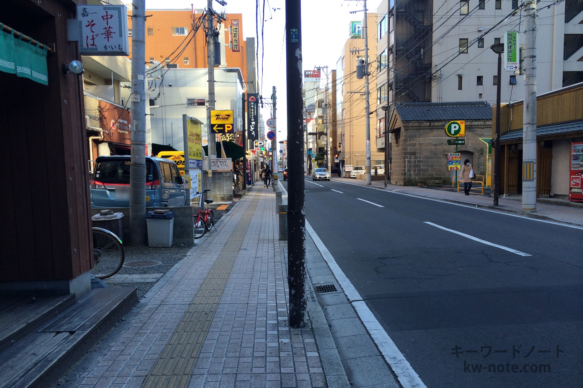 最寄り駅は勾当台公園駅で徒歩5分、仙台駅からは徒歩20分、店舗の裏手には仙台市役所とその先には宮城県庁がある場所。