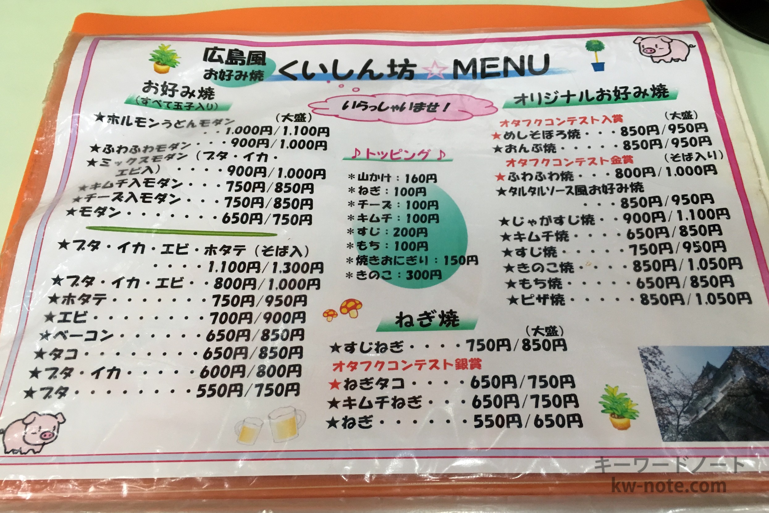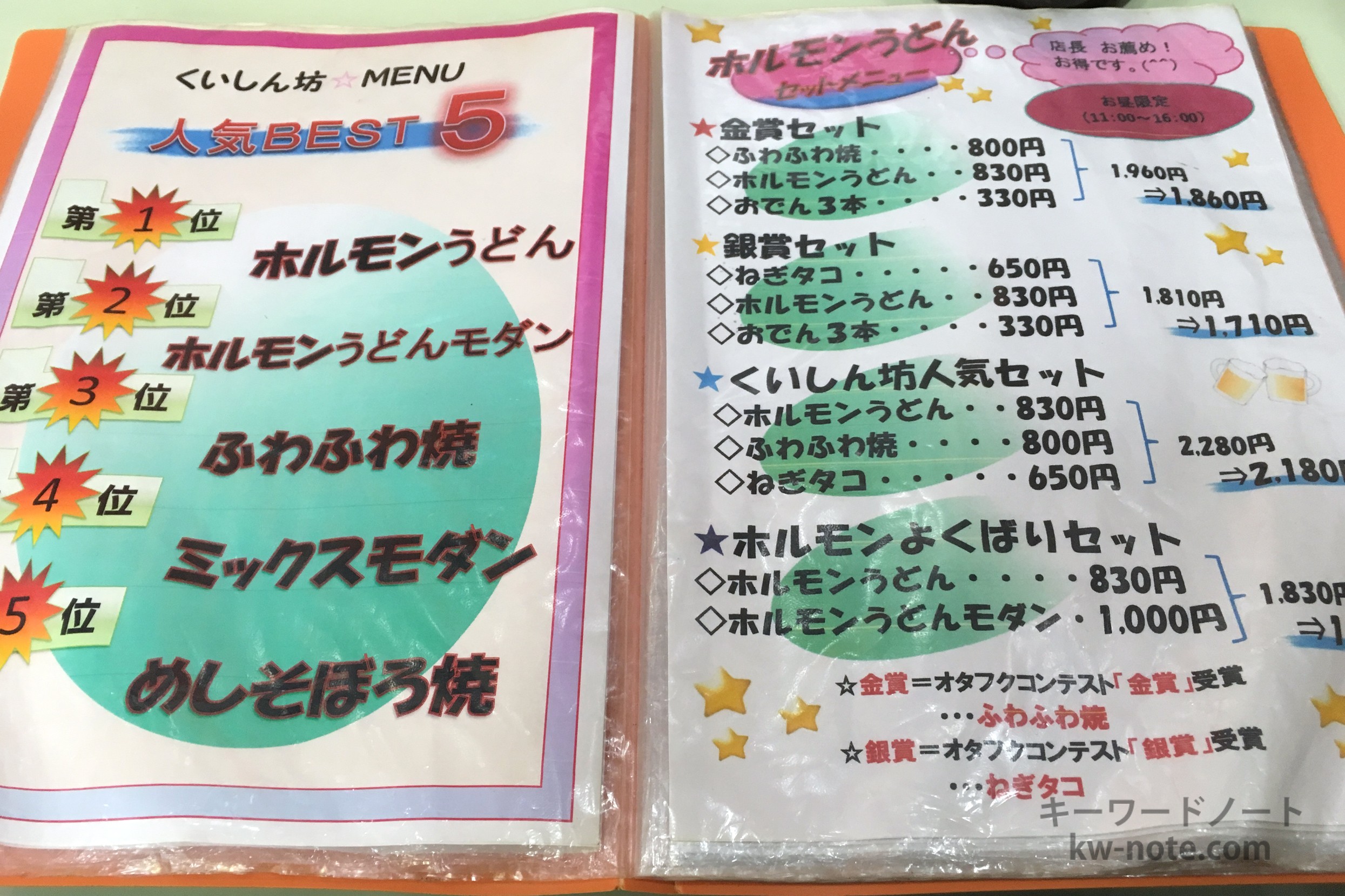 メニューは津山のご当地グルメ・ホルモンうどんの他、お好み焼き、ねぎ焼き、とん平焼きなど、粉ものの鉄板焼きが揃っています。