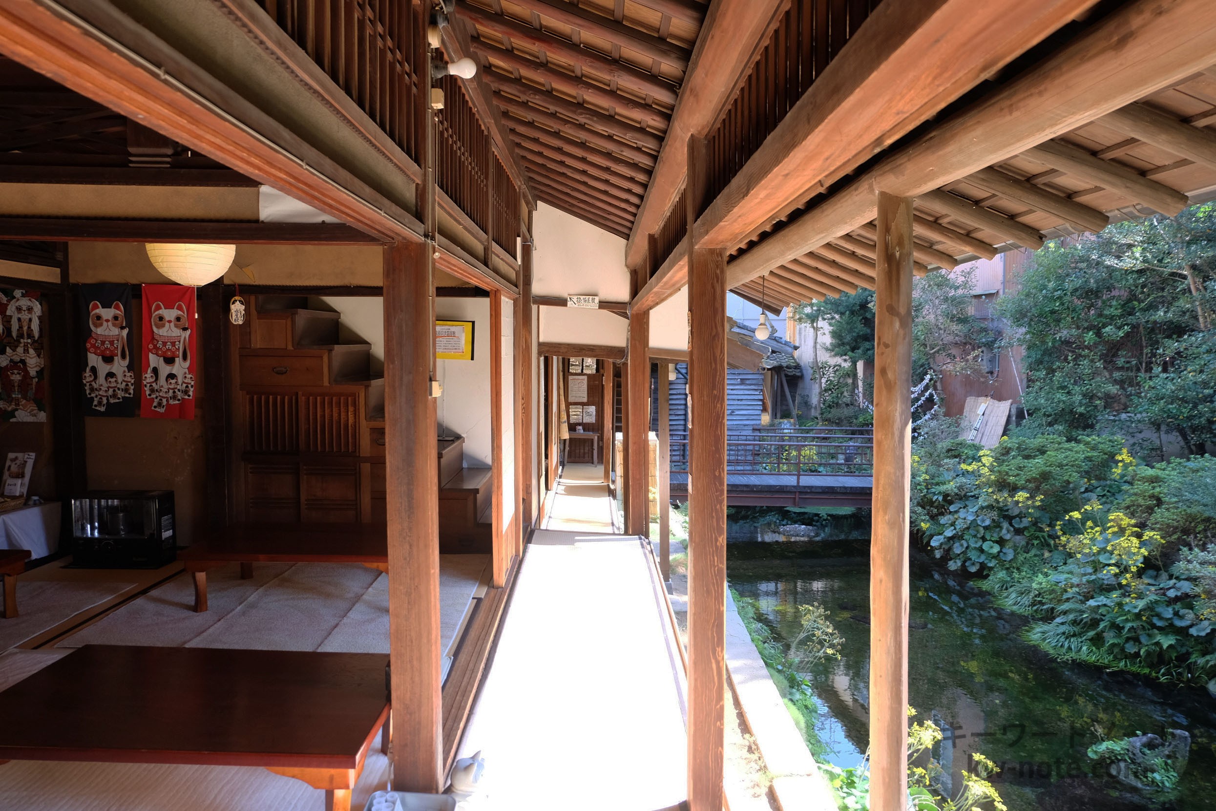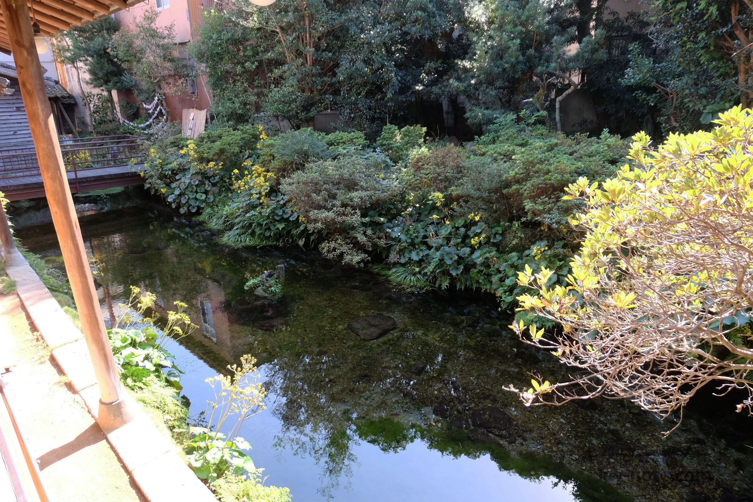 入り口は商店街に面していますが、一歩お店に踏み入れると、そこには澄んだ湧水が広がる風情ある古民家が目の前に。