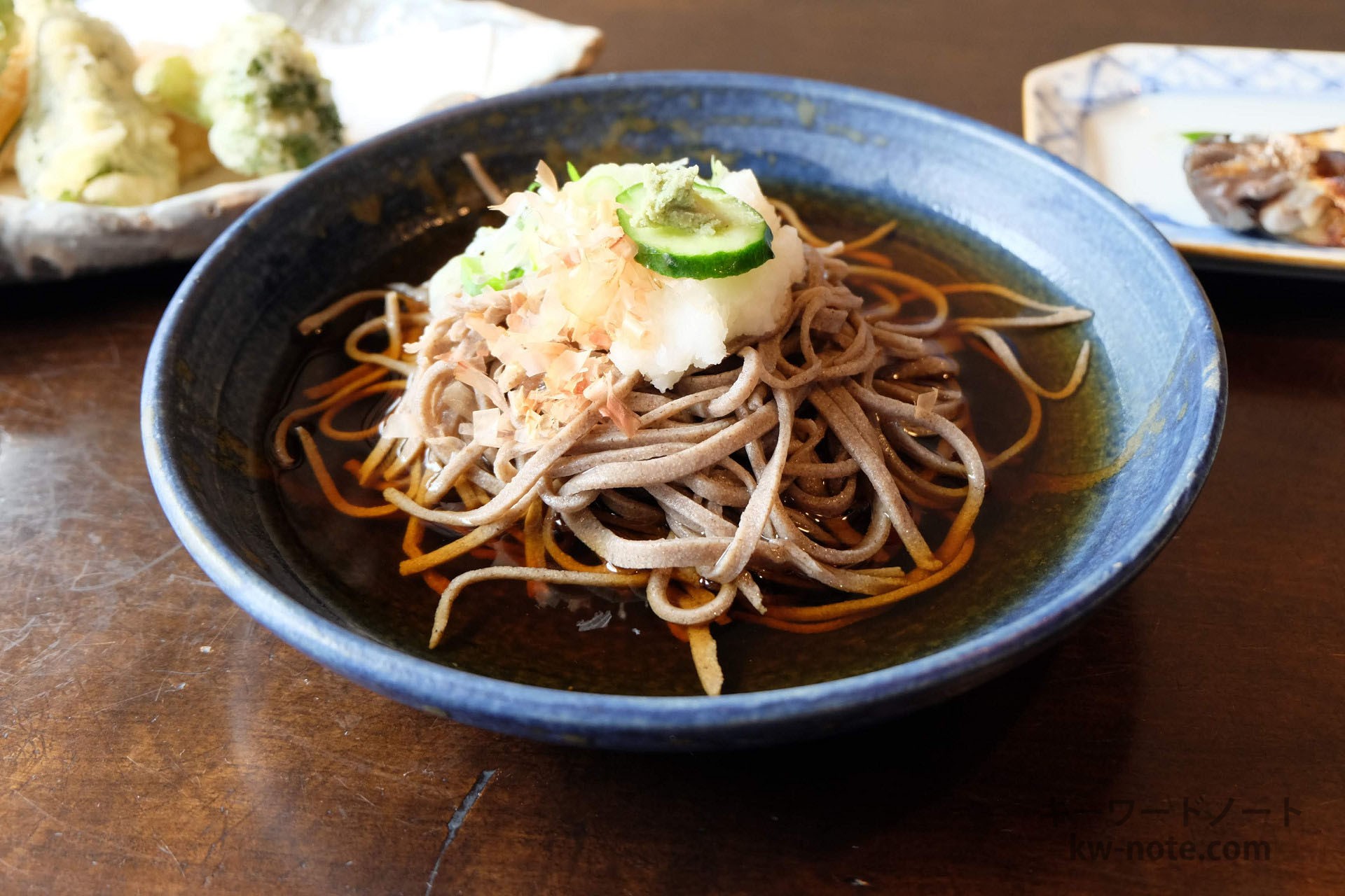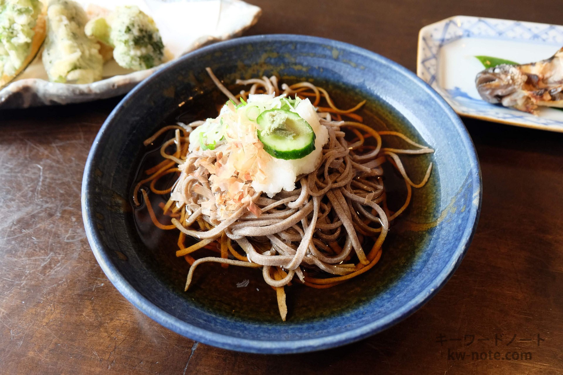 今回注文したのはおすすめだという「おろしそば」に「野菜の天ぷら」「岩魚の塩焼き」を注文。