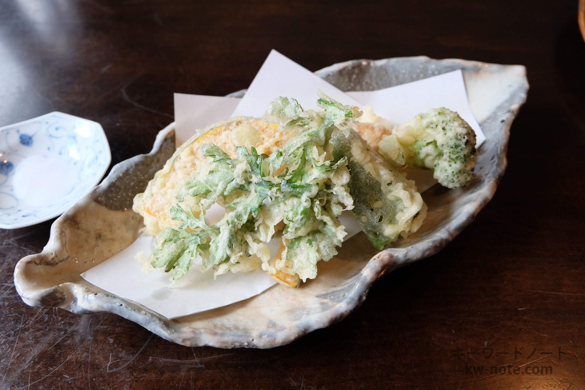所有している山から採って揚げる「山菜の天ぷら」は季節限定のため注文出来ず「野菜の天ぷら」に。