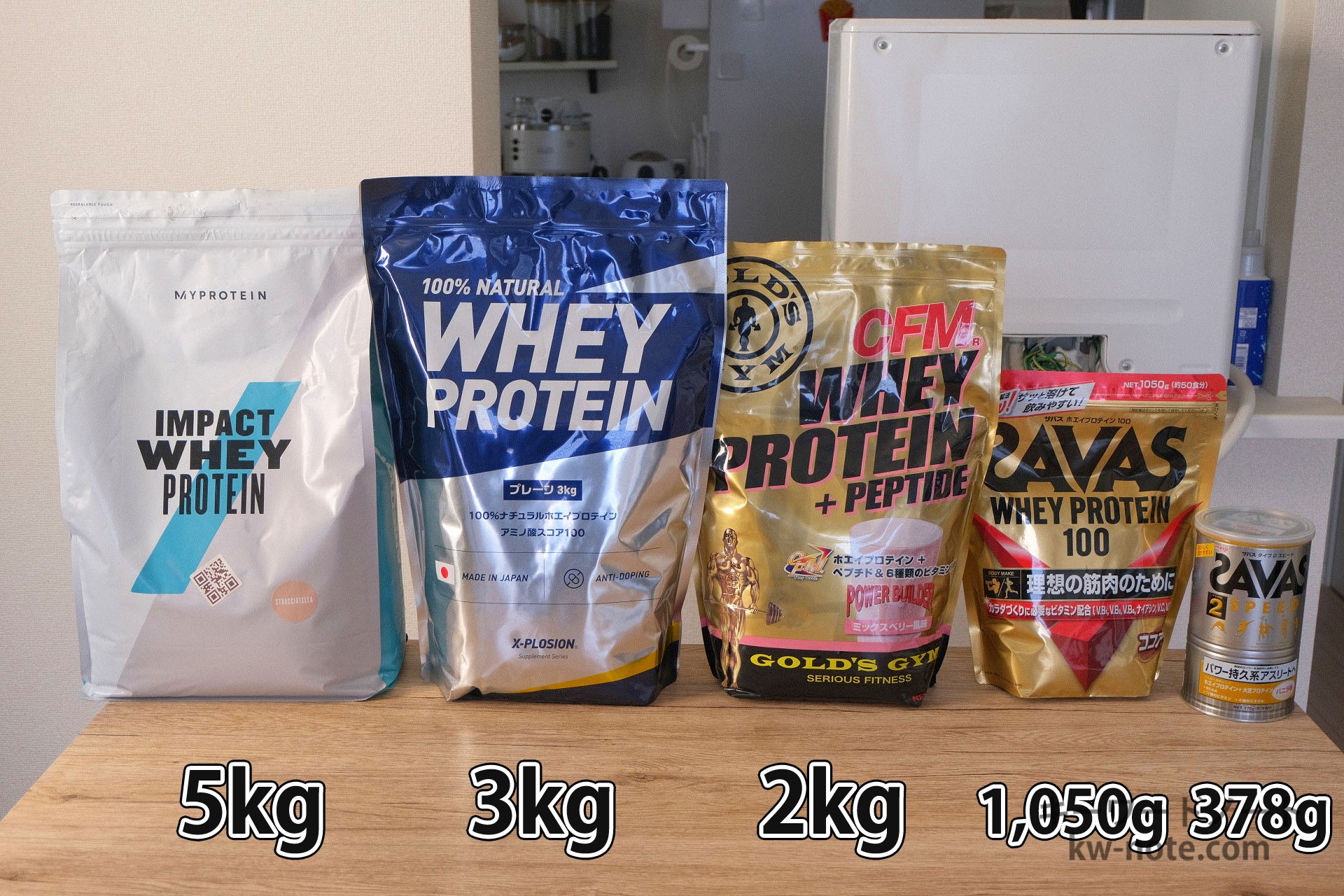 プロテインをネット通販などで購入する際に、何グラムとか何キログラムと重量の表記がされているわけですが、初めて買う商品だとそれがどれくらいの大きさなのかよくわからない場合があります。